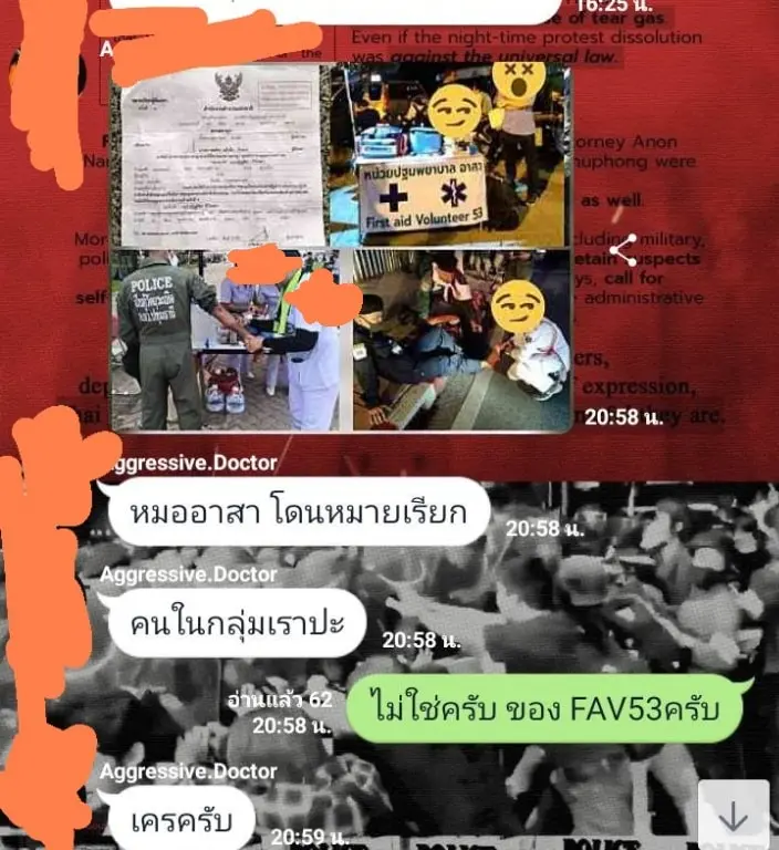 ปล.รูปถ่ายจากเพจ ว.แหวน ณัฏฐธิดา มีวังปลา เป็นเพียงรูปประกอบให้เห็นว่าเราเป็นเจ้าหน้าที่อาสาด้วยจรรยาบรรณเราไม่มีสิทธิ์เลือกปฏิบัติไม่ว่าจะเป็นเจ้าหน้าที่ตำรวจทั้งในเครื่องแบบและนอกเครื่องแบบหรือประชาชนหากเราพบเห็นเขาเหล่านั้นเจ็บป่วยบาดเจ็บ เราต้องทำการปฐมพยาบาลหรือรักษาโดยทันทีโดยไม่มีสิทธิ์เลือกปฏิบัติใดๆทั้งสิ้น นี่คือจรรยาบรรณของแพทย์พยาบาลและหน่วยปฐมพยาบาอาสา