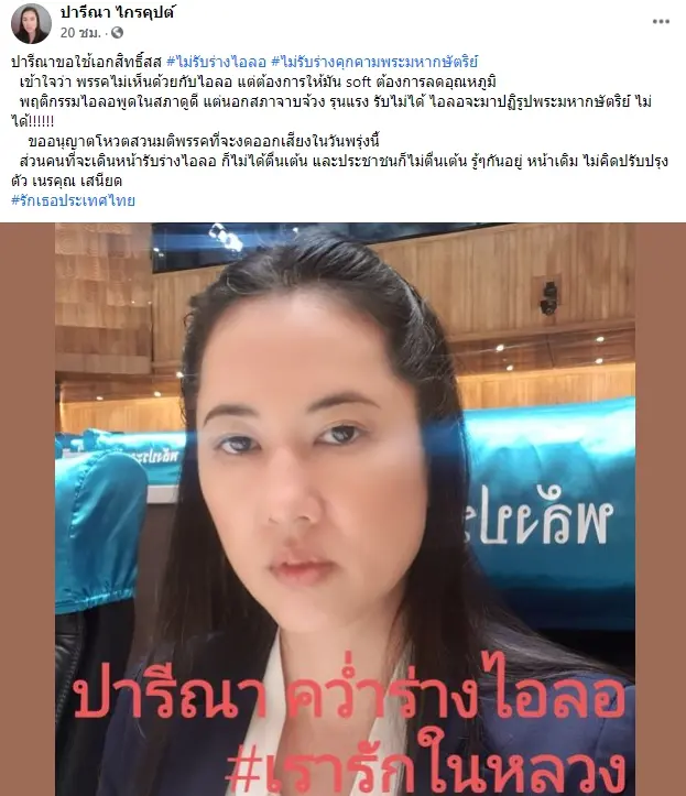 “ปารีณาขอใช้เอกสิทธิ์สส #ไม่รับร่างไอลอ #ไม่รับร่างคุกคามพระมหากษัตริย์