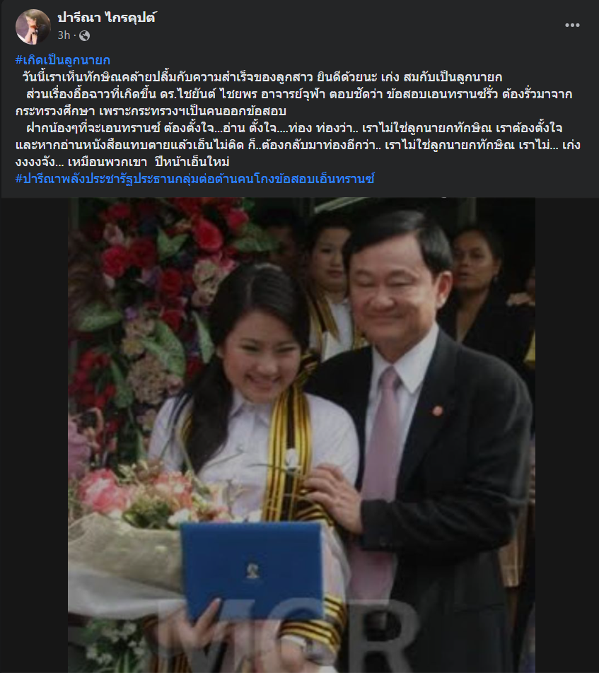 #ปารีณาพลังประชารัฐประธานกลุ่มต่อต้านคนโกงข้อสอบเอ็นทรานซ์”