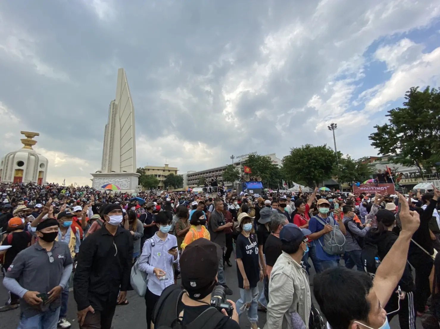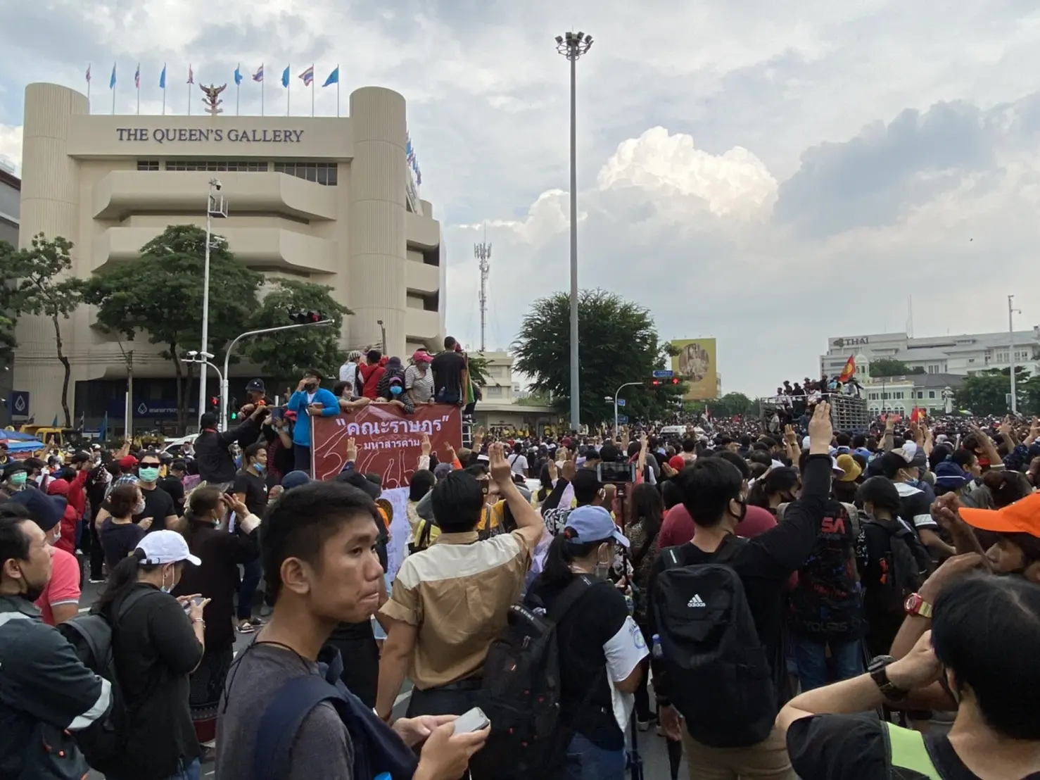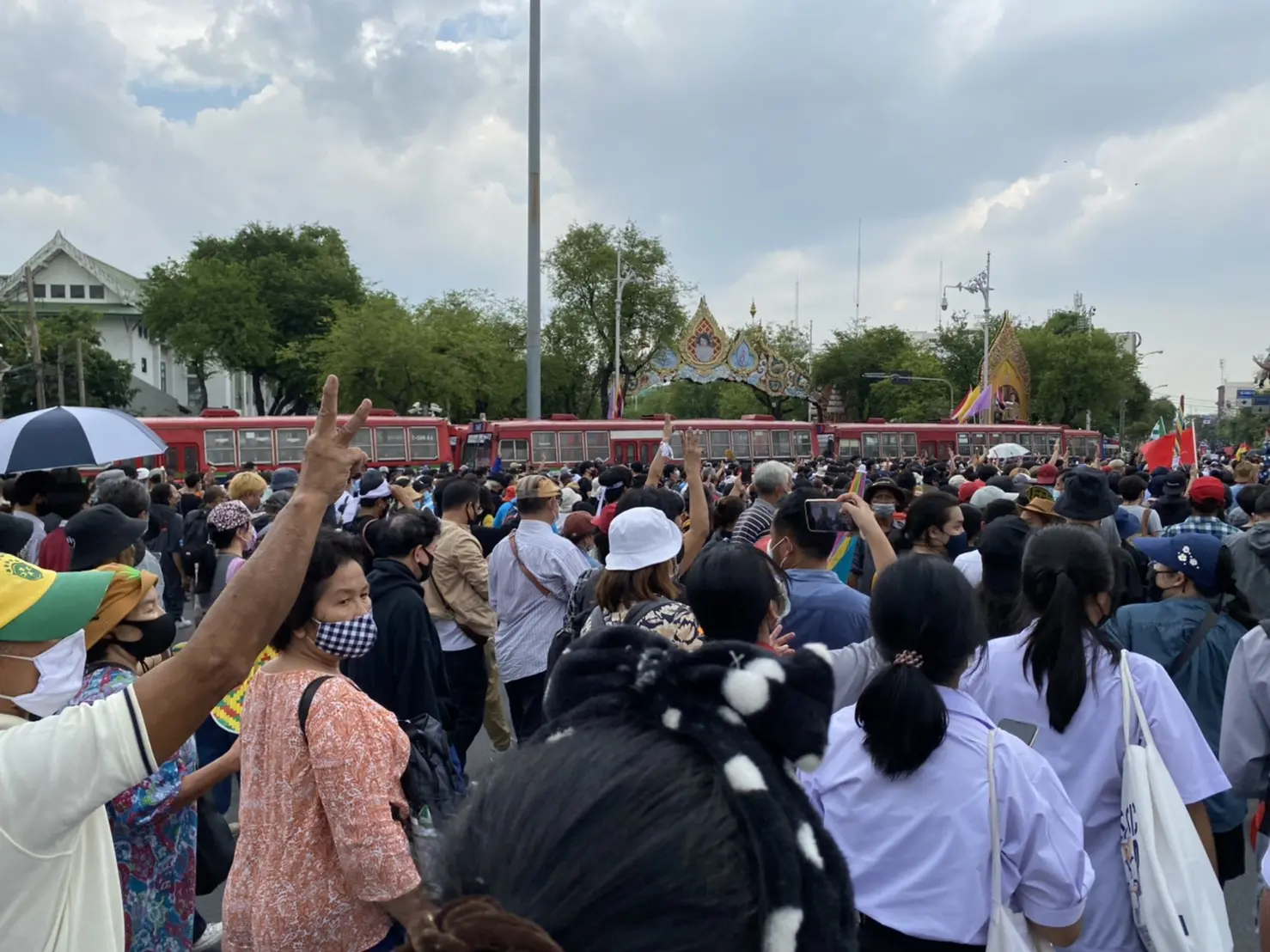 ล่าสุด กลุ่มผู้ชุมนุมได้ในเวลานี้กลุ่มผู้ชุมนุมเต็มพื้นที่แยกคอกวัว และอนุสาวรีย์ประชาธิปไตย โดยในระหว่างทาง นายอานนท์ นำภา ทนายความด้านสิทธิมนุษย์และนักเคลื่อนไหวทางการเมือง นำมวลชนอ่านบทกวี โดย วิสา คัญทัพ