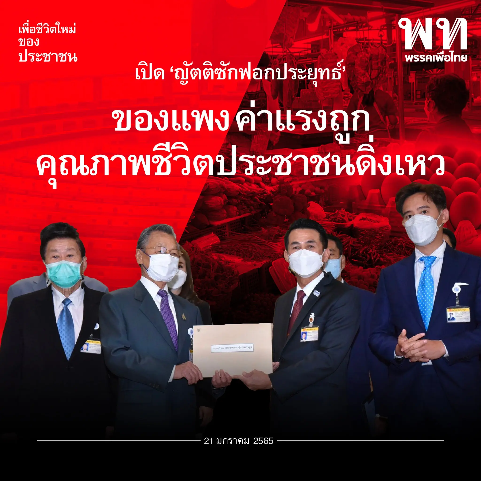 1 สถานการณ์ด้านเศรษฐกิจของประเทศขณะนี้ได้ส่งผลกระทบต่อการดำเนินชีวิตและความเป็นอยู่ของประชาชนอย่างรุนแรงเข้าทำนอง “ข้าวของแพง ค่าแรงถูก” อันเป็นผลสืบเนื่องมาจากการบริหารราชการแผ่นดินที่ล้มเหลวผิดพลาดในทุกด้านของรัฐบาลนี้ โดยเฉพาะด้านเศรษฐกิจที่ตกต่ำและทรุดตัวมาอย่างต่อเนื่องนับตั้งแต่มีการยึดอำนาจจนถึงการบริหารของรัฐบาลปัจจุบันซึ่งเป็นรัฐบาลเดียวกัน มีการก่อหนี้สาธารณะสูงสุดเป็นประวัติการณ์จนต้องขยายเพดานหนี้สาธารณะ ขณะที่หนี้ครัวเรือนของประชาชนและอัตราการว่างงานของนักศึกษาจบใหม่ก็สูงขึ้น เมื่อเกิดการแพร่ระบาดของโรคโควิด-19 ที่ส่งผลให้มีผู้ติดเชื้อกว่าสองล้านคนและเสียชีวิตกว่าสองหมื่นคน ขณะที่มาตรการป้องกันและแก้ปัญหาก็ไม่มีความชัดเจนแน่นอนกลับไปกลับมายิ่งทำให้เศรษฐกิจของประเทศดิ่งเหว การท่องเที่ยวได้รับผลกระทบอย่างรุนแรง ขณะที่รัฐบาลไม่มีมาตรการเยียวยาที่เหมาะสม ประชาชนทุกสาขาอาชีพได้รับความเดือดร้อนอย่างถ้วนหน้า การจัดหาวัคซีนเพื่อนำมาฉีดให้ประชาชนก็ล่าช้าไร้ประสิทธิภาพ