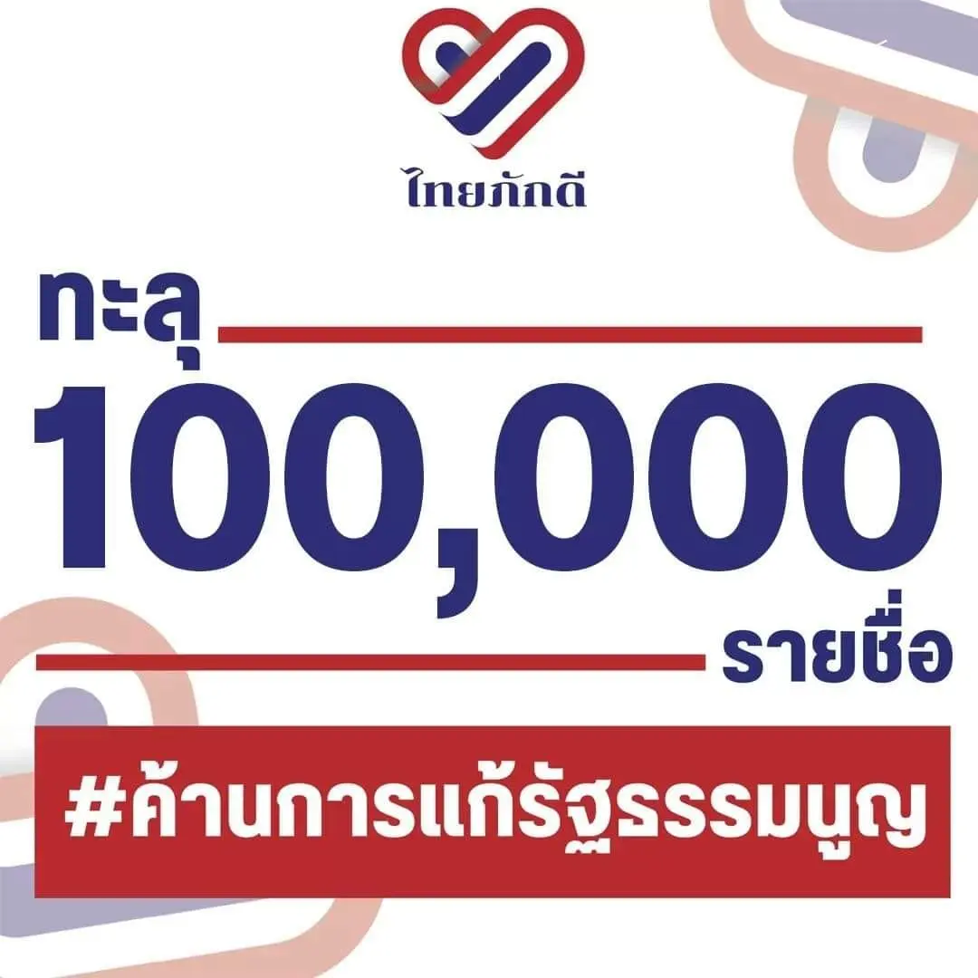 ล่าสุด 12 ก.ย.63 อุ๊ หฤทัย ม่วงบุญศรี นักร้องชื่อดัง โพสต์ข้อความในเฟซบุ๊กชื่อ “หฤทัย ม่วงบุญศรี” ระบุว่า หนึ่งแสนรายชื่อเมื่อเวลาประมาณ 18:30 น. (วันที่ 11 ก.ย.63) “ไทยภักดีทะลุ 100,000 รายชื่อ” #ค้านแก้รัฐธรรมนูญ