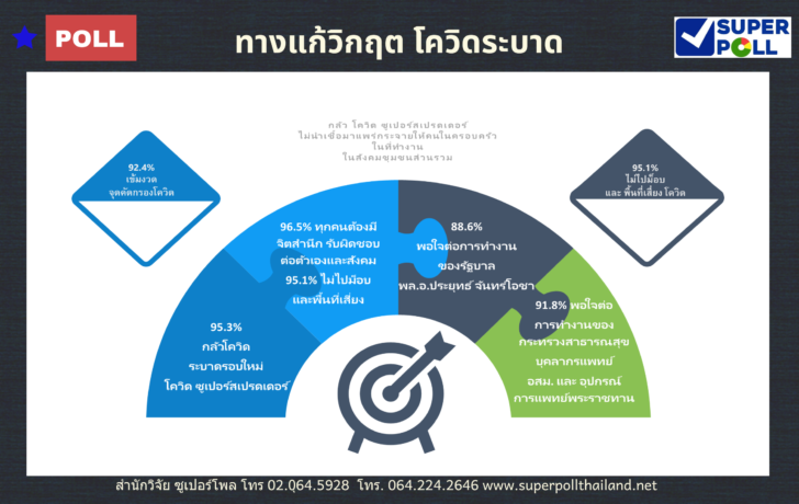 ผอ.ซูเปอร์โพล ระบุว่า ผลโพลครั้งนี้ชี้ชัดเจนว่า ประชาชนพอใจต่อทุกภาคส่วนทุกระดับในโครงสร้างของสังคมไทยตั้งแต่พระมหากรุณาธิคุณที่คนไทยทั้งประเทศได้รับเครื่องมืออุปกรณ์ทางการแพทย์พระราชทาน การทำงานของรัฐบาล พล.อ.ประยุทธ์ จันทร์โอชา กระทรวงสาธารณสุข บุคลากรทางการแพทย์ อสม. และทุกภาคส่วน นี่คืออัตลักษ์ที่ดีของความเป็นคนไทยที่แตกต่างจากคนในประเทศต่าง ๆ ทั่วโลกที่ควรจะช่วยกันรักษาไว้