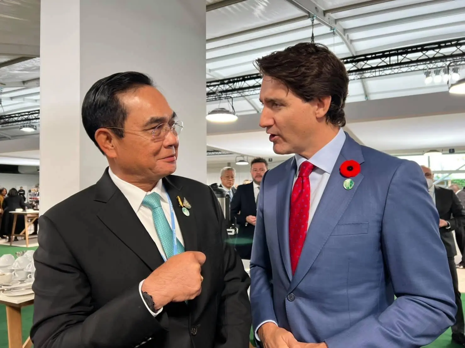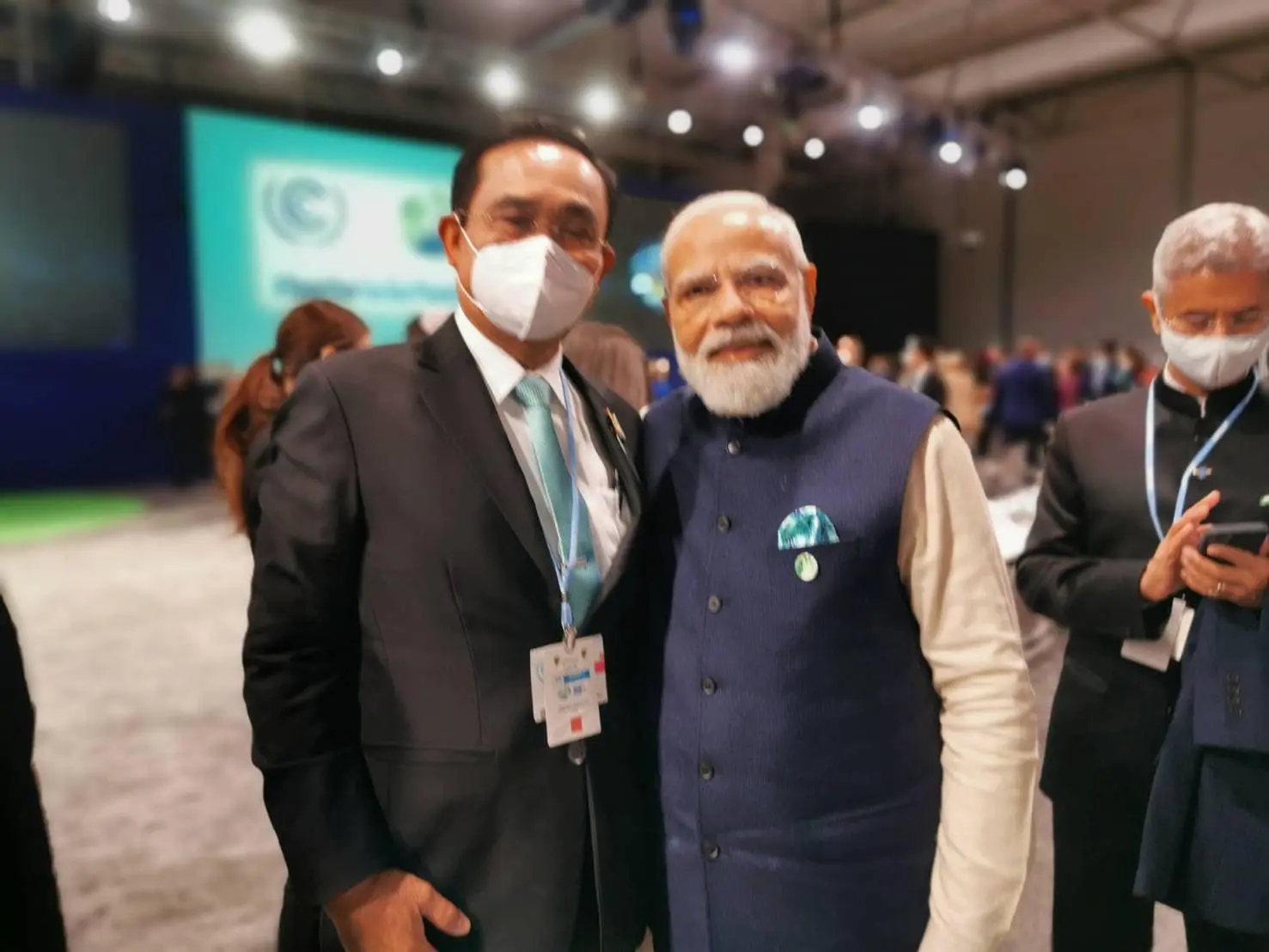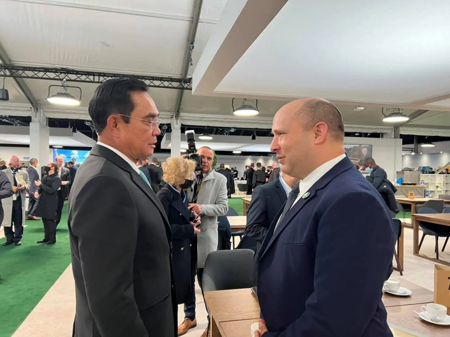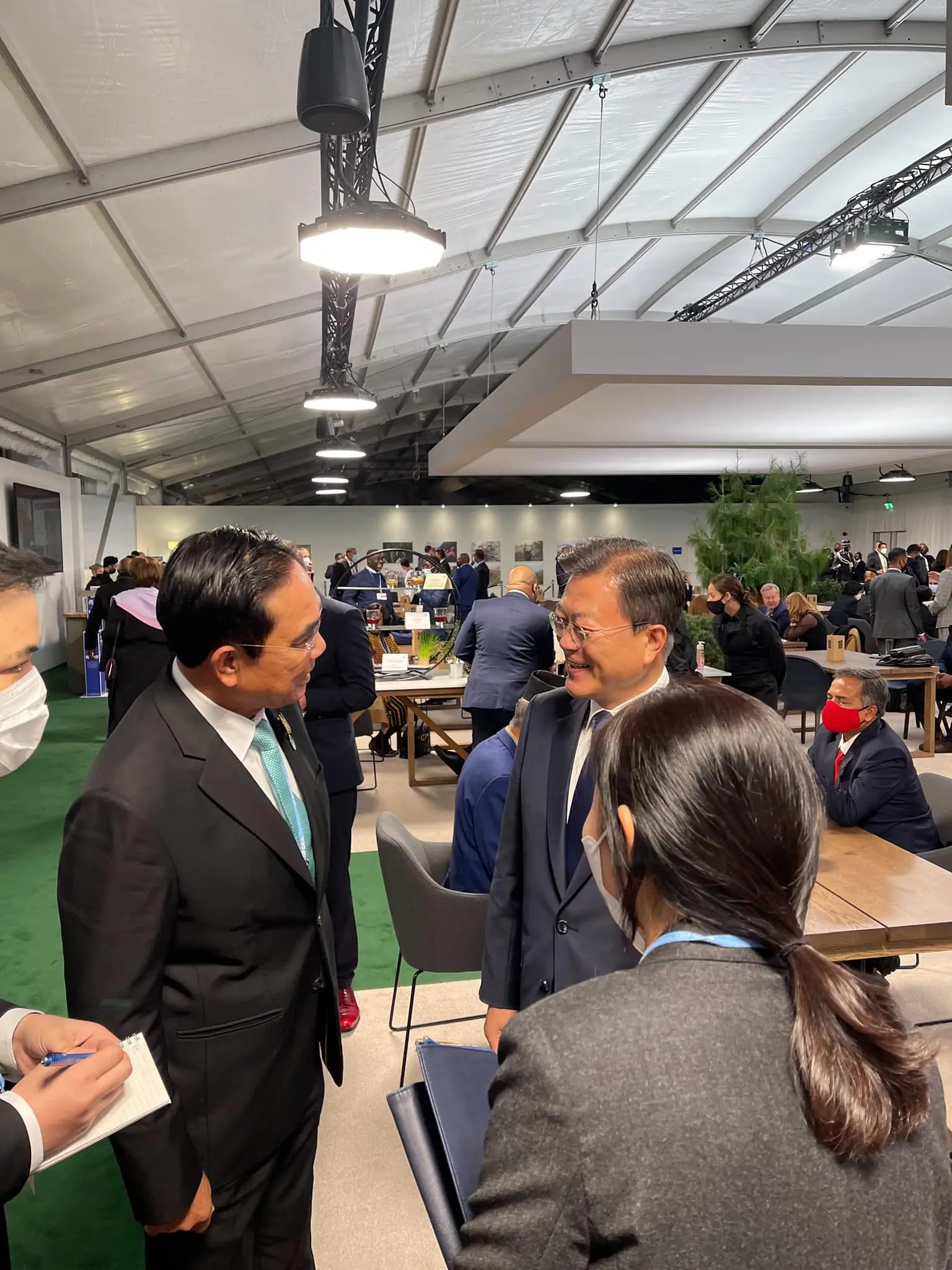 ประชุม COP 26 —- เมื่อวันที่ 1 พ.ย. 2564 เฟซบุ๊กไทยคู่ฟ้า ได้เปิดเผยภาพของ พล.อ.ประยุทธ์ จันทร์โอชา นายกรัฐมนตรี ที่ได้พบปะผู้นำประเทศต่าง ๆ เช่น เยอรมนี แคนาดา อิสราเอล คูเวต เกาหลีใต้ อินโดนีเซีย อินเดีย อย่างเป็นกันเอง ระหว่างรอพิธีเปิดการประชุมว่าด้วยการเปลี่ยนแปลงสภาพภูมิอากาศ สมัยที่ 26 หรือ COP 26 ที่จัดขึ้น ณ เมืองกลาสโกว์ สหราชอาณาจักร โดยได้มีการใช้ข้อศอกชนเพื่อทักทายกันแทนการจับมือ ถือเป็นการทักทายรูปแบบใหม่ในช่วงการระบาดของโควิด19 และพูดคุยในประเด็นที่สนใจร่วมกัน รวมถึงการที่ไทยจะเป็นเจ้าภาพเอเปกในปี 2565 ด้วย