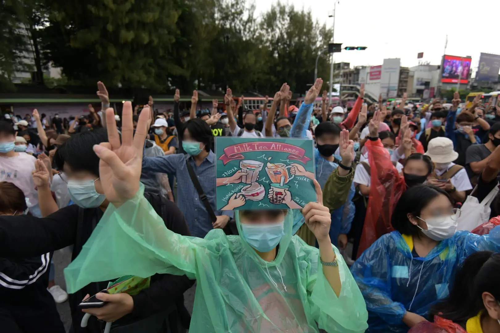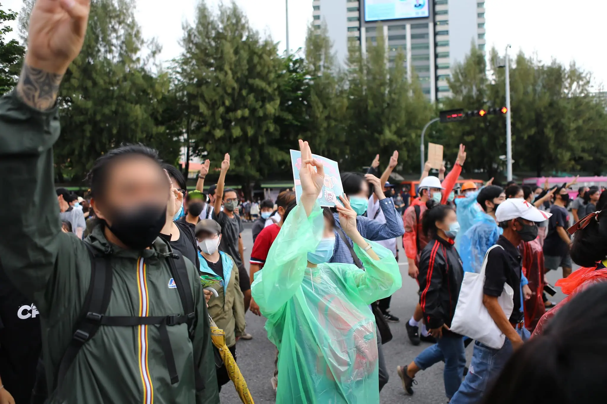 ผู้ชุมนุม — หลังจากที่เพจเยาวชนปลดแอกได้ประกาศว่ากลุ่มราษฎรได้นัดชุมในเวลา 16.00 น. ที่บริเวณอนุสาวรีย์ชัยสมรภูมิ ล่าสุดเริ่มมีกลุ่มผู้ชุมนุมเดินทางมายังอนุสาวรีย์ชัยสมรภูมิ และมวลชนได้ลงถนนแล้ว พร้อมกับชู 3 นิ้ว ยืนยัน 3 ข้อเรียกร้องคือ 1. พล.อ.ประยุทธ์ จันทร์โอชาต้องลาออกจากตำแหน่ง 2. ต้องแก้ไขรัฐธรรมนูญ และ 3. ปฏิรูปสถาบัน