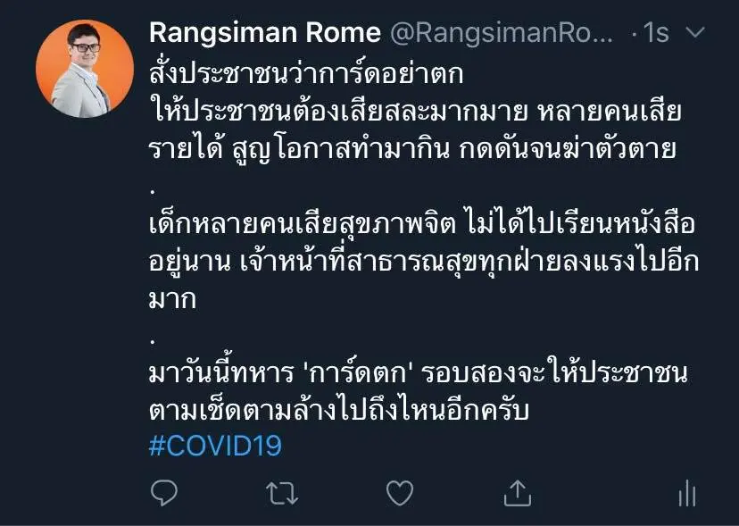 “รัฐบาลประกาศใช้อำนาจตาม พ.ร.ก. ฉุกเฉินมาเกือบ 4 เดือน พร้อมสโลแกน “การ์ดอย่าตก” อ้างเพื่อป้องกัน COVID-19 เรียกว่าขู่กันทั้งด้วยกฎหมายและด้วยวาทกรรม