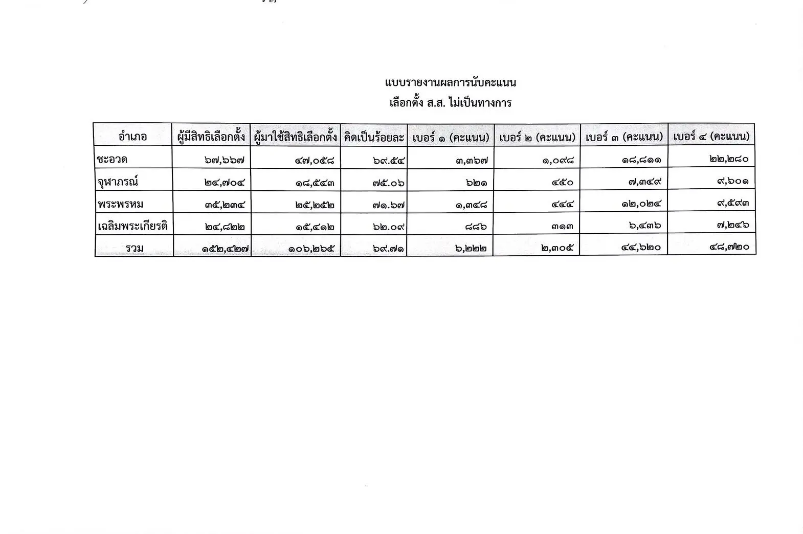 ทั้งนี้ผลการนับคะแนนอย่างไม่เป็นทางการล่าสุด มีดังนี้