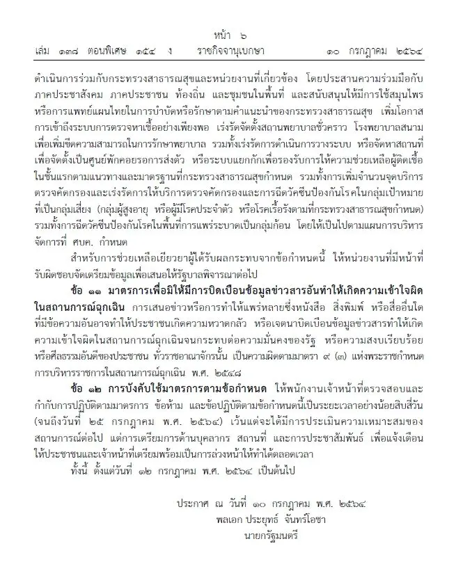 ทั้งนี้ มีผลตั้งแต่วันที่ 12 กรกฎาคม พ.ศ. 2564 เป็นต้นไป