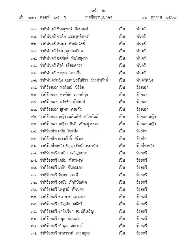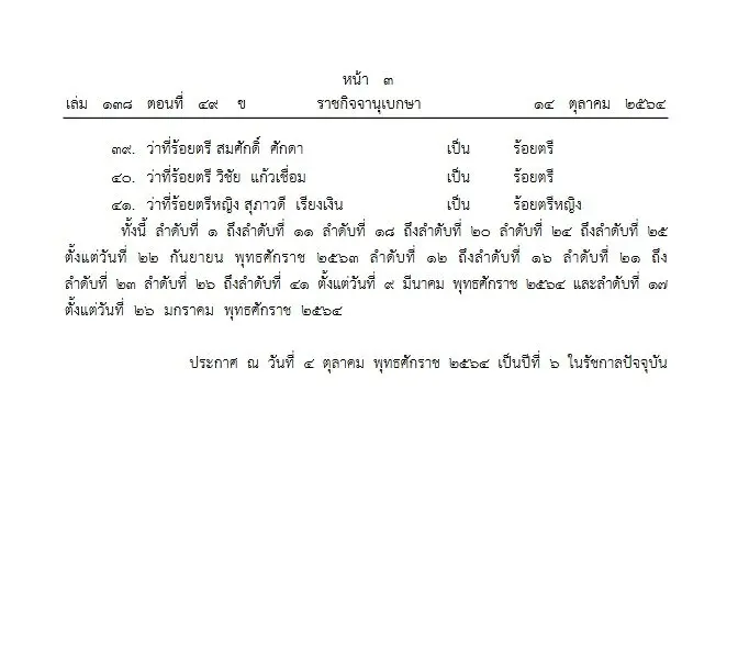 ประกาศ ณ วันที่ 4 ตุลาคม พุทธศักราช 2564 เป็นปีที่ 6 ในรัชกาลปัจจุบัน