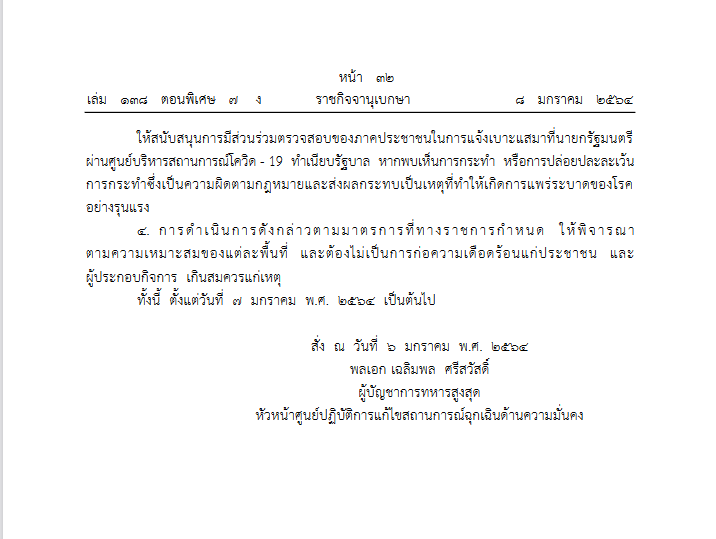 สั่ง ณ วันที่ 6 มกราคม พ.ศ.2564