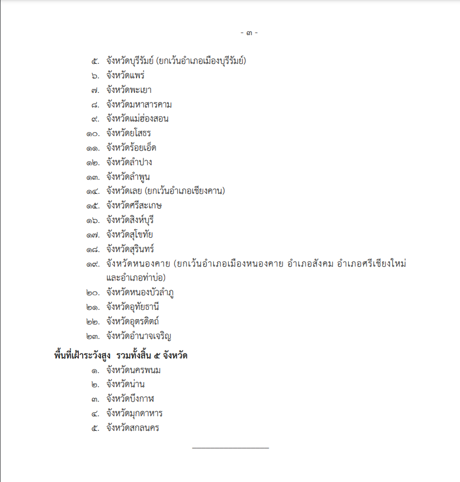 พื้นที่เฝ้าระวังสูง รวมทั้งสิ้น 5 จังหวัด