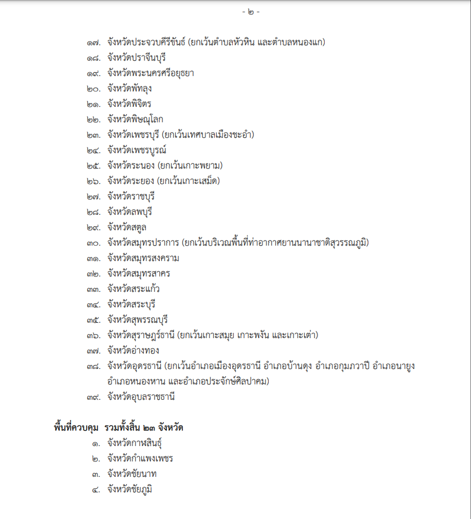 พื้นที่ควบคุม รวมทั้งสิ้น 23 จังหวัด