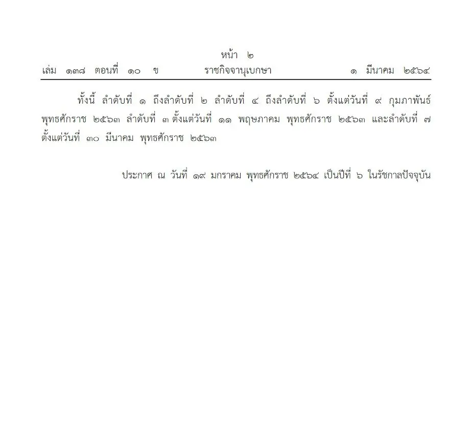 ประกาศ ณ วันที 19 มกราคม พุทธศักราช 2564 เป็นปีที่ 6 ในรัชกาลปัจจุบัน