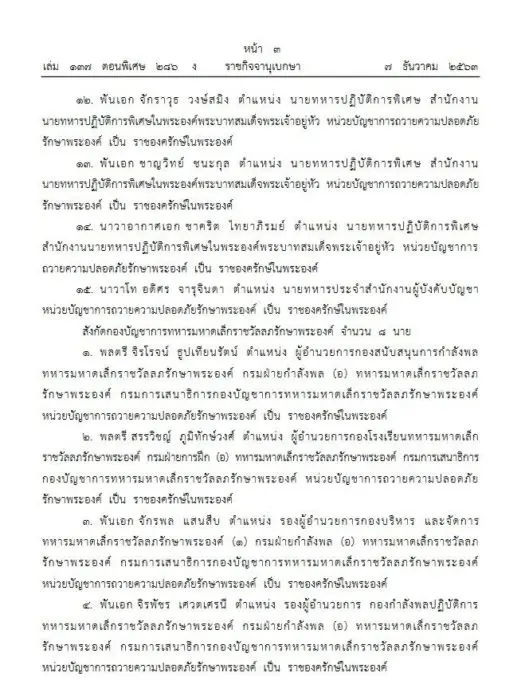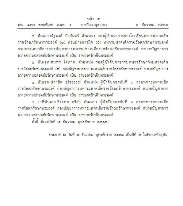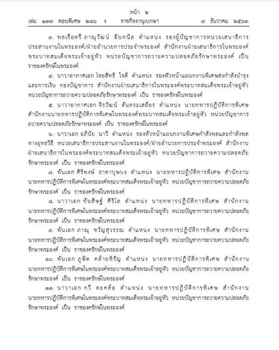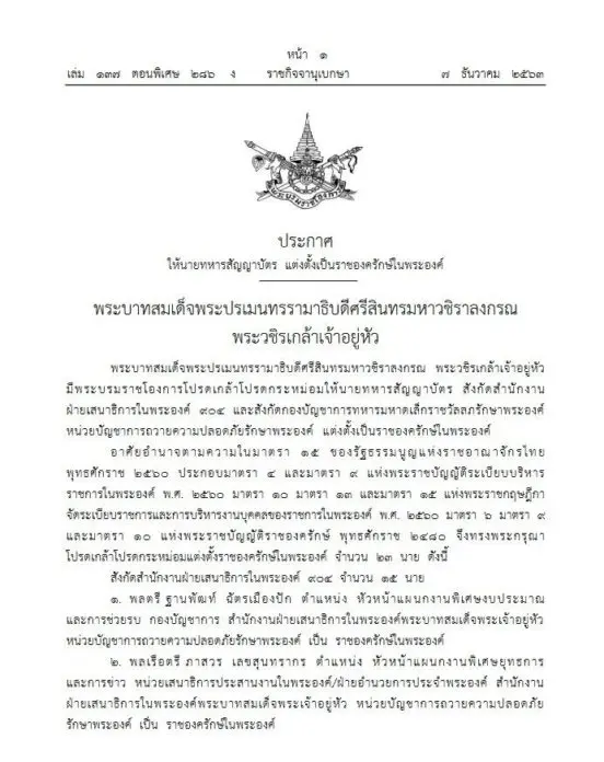 โปรดเกล้าฯแต่งตั้ง —- เว็บไซต์ ราชกิจจานุเบกษา เผยแพร่ พระบรมราชโองการ ประกาศให้นายทหารสัญญาบัตร แต่งตั้งเป็นราชองครักษ์ในพระองค์ ความว่า