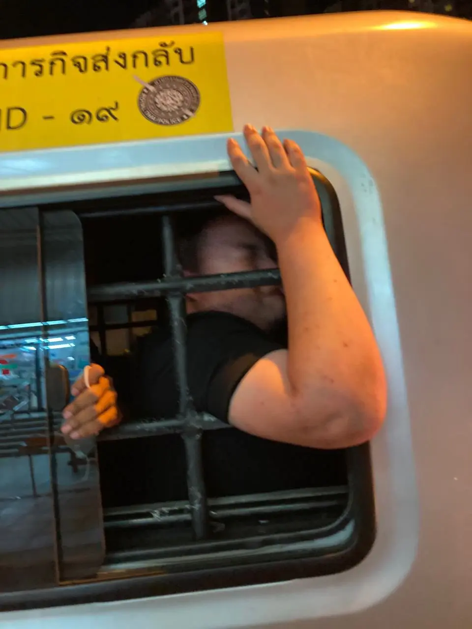 ขณะที่ศูนย์ทนายความเพื่อสิทธิมนุษยชนได้เปิดเผยภาพของรุ้งขณะถูกนำตัวไปยังสน.ประชาชื่น โดยคาดว่าถูกนำตัวไปเพื่อทำบันทึกจับกุม โดยในเวลานี้ มีรายงานว่าเกิดเหตุชุลนุมในช่วงที่ตำรวจพยายามตำตัวแกนนำออกจากรถผู้ต้องขังด้วย ด้านเพนกวิน และไมค์ระยองได้เปิดเผยกับมวลชน ที่มาให้กำลังใจว่าถูกตำรวจใช้กำลัง และล็อคคอด้วย