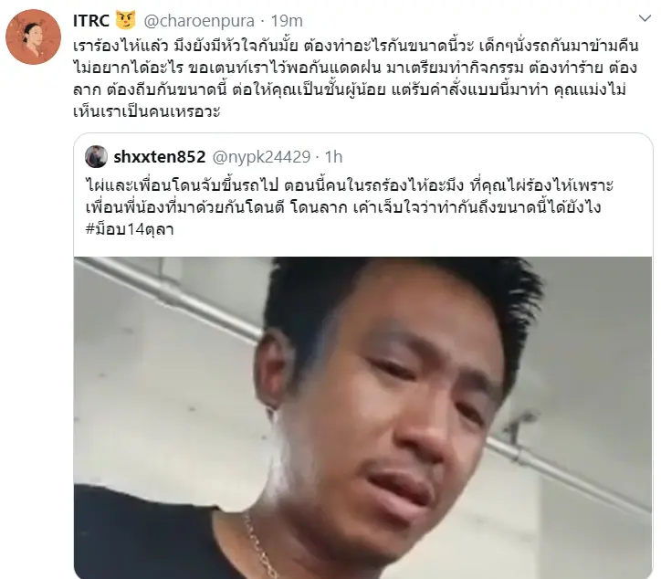 จากกรณีดังกล่าว ทราย เจริญปุระ ได้ออกมาโพสต์ทวิตเตอร์ระบุว่า “เราร้องไห้แล้ว มึงยังมีหัวใจกันมั้ย ต้องทำอะไรกันขนาดนี้วะ เด็กๆนั่งรถกันมาข้ามคืน ไม่อยากได้อะไร
