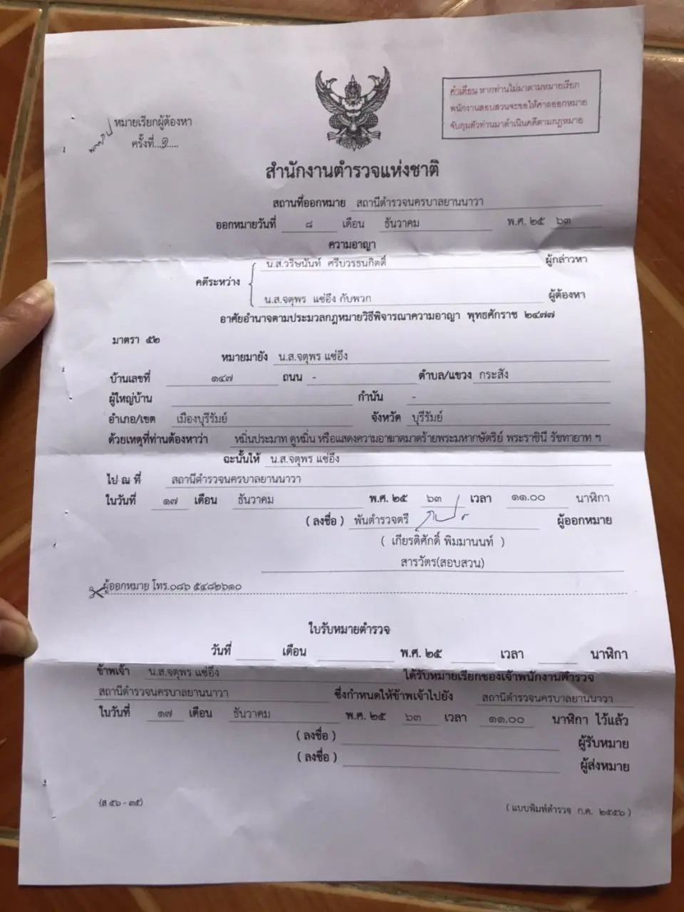 ทั้งนี้ ผู้ที่แจ้งความคือ น.ส.วริศนันท์ ศรีบวรธนกิตติ์ แอดมินเพจเชียร์ลุง โดยภายในหมายเรียกตัวของน.ส.จตุพรได้ระบุข้อกล่าวหาในคดีหมิ่นประมาท หรือแสดงความอาฆาตมาตร้ายด้วยพระมหากษัตริย์ พระราชินี รัชายาท โดยน.ส.จตุพรมีกำหนดต้องเดินทางไปรับทราบข้อกล่าวหาที่สถานีตำรวจนครบาลยานนาวา ในเวลา 11.00 น. วันที่ 17 ธ.ค. 63 นี้