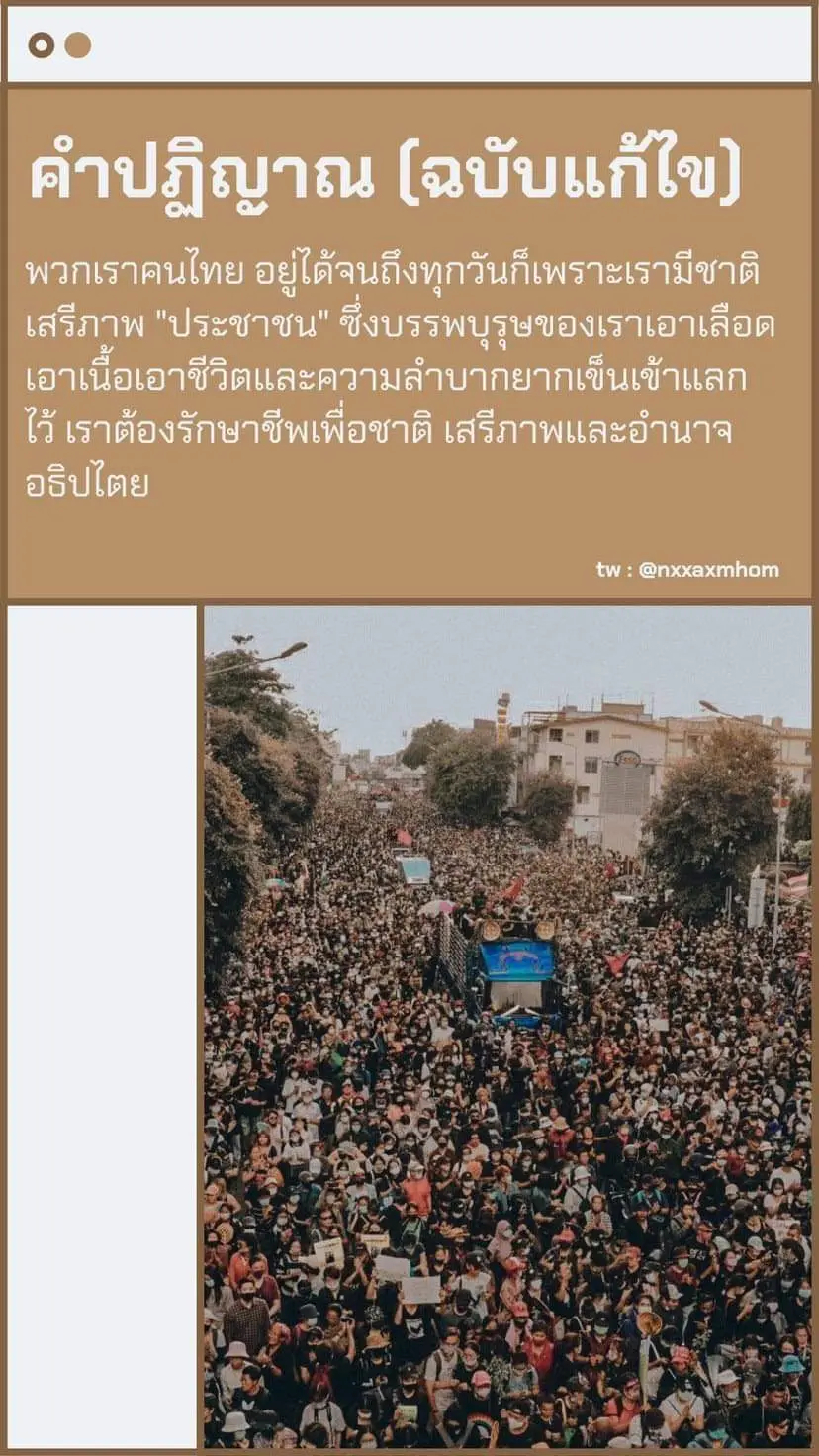 แต่ขณะทำกิจกรรมหน้าเสาธง ทางโรงเรียนได้ข้ามกิจกรรมการปฏิญาณตนไป แต่นักเรียนก็ยังคงพร้อมใจกันปฏิญาณที่มีใจความ “ชาติ เสรีภาพ ประชาชน”