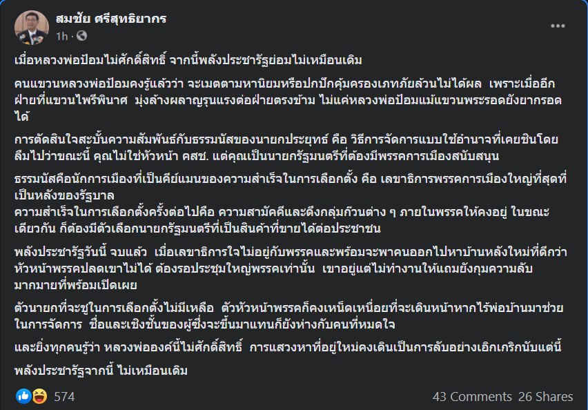เมื่อหลวงพ่อป้อมไม่ศักดิ์สิทธิ์ จากนี้พลังประชารัฐย่อมไม่เหมือนเดิม