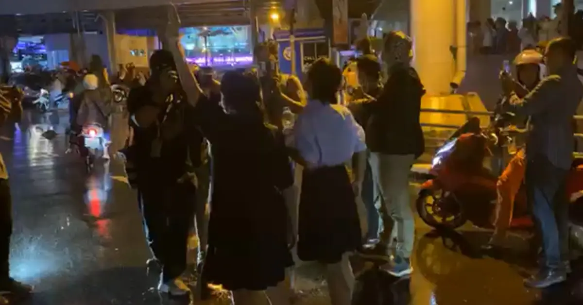 นักเรียนชูสามนิ้ว ก่อนหน้านี้ เวลา 18:50 เกิดเหตุการณ์สลายการชุมนุม “แยกประทุมวัน” เจ้าหน้าที่ทำการสลายการชุมนุม ด้วยการใช้รถฉีดน้ำเเรงดันสูง โดยน้ำสีฟ้า มีส่วนผสมของ แก๊สน้ำตา ทำให้เกิดการระคายเคืองได้ ล่าสุด มีภาพนักศึกษาก้มกราบเจ้าหน้าที่ เพื่อร้องขอความเป็นธรรม ซึ่งเป็นภาพที่เห็นเเล้ว ประชาชนต่างรู้สึกหดหู่ต่อสถานการณ์ที่เจ้าหน้าที่สลายการชุมนุม ซึ่งในเหตุการณ์ ก็มีเเต่พลังของเด็กเเละนักศึกษาจำนวนมาก