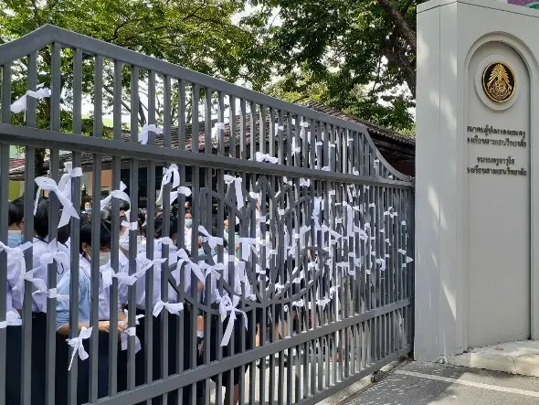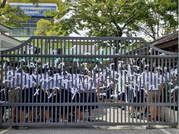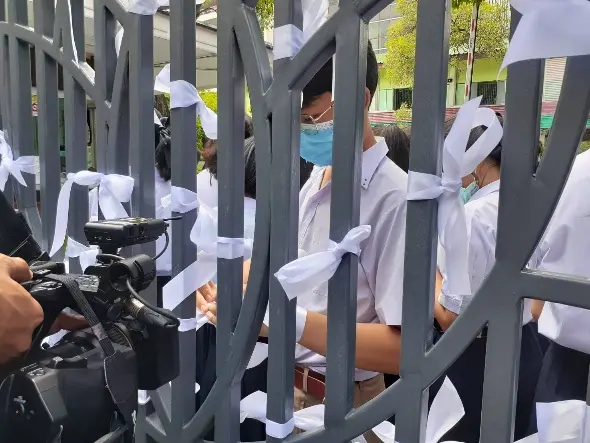 โดยตัวแทนนักเรียนจากโรงเรียนสามเสนวิทยาลัย ระบุว่า ในวันนี้ทางตัวแทนจะยื่นหนังสือร่วมกับกลุ่มนักเรียนเลว เพื่อเรียกร้องสิทธิด้านทรงผม การทำร้าย การตี การคุกคามนักเรียน ซึ่งพบว่าที่โรงเรียนก็มีครูบางคนที่มีพฤติกรรมลักษณะนี้อยู่ พร้อมทำกิจกรรมแสดงออกเชิงสัญลักษณ์ด้วยการผูกโบขาว และชูสามนิ้วด้วย ซึ่งทางโรงเรียนก็อนุญาตให้นักเรียนทำกิจกรรม ไม่ได้ปิดกั้นแต่อย่างใด