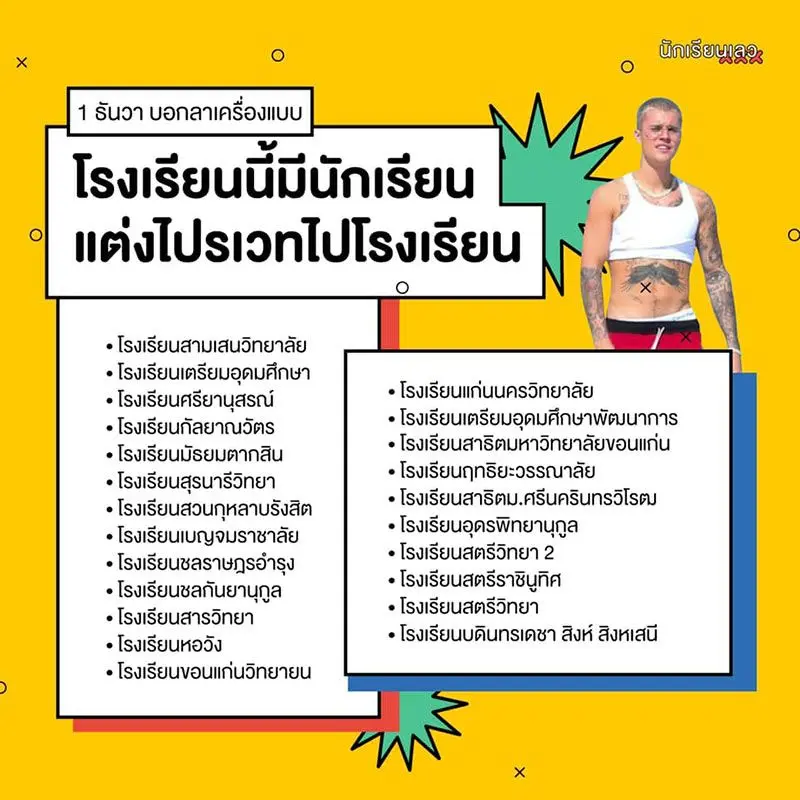 พร้อมโพสต์ข้อความระบุว่า กลัวไม่มีคนใส่ไปรเวทเป็นเพื่อน เช็คลิสต์ตามนี้ได้เลย รวมโรงเรียนที่จะมีนักเรียนแต่งไปรเวทไปโรงเรียนแน่นอน และมีองค์กรนักเรียนในโรงเรียนให้การสนับสนุน 1 ธันวา มาสร้างประวัติศาสตร์แห่งการเปลี่ยนแปลงไปด้วยกัน