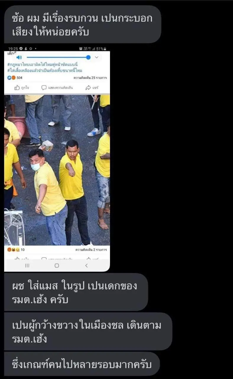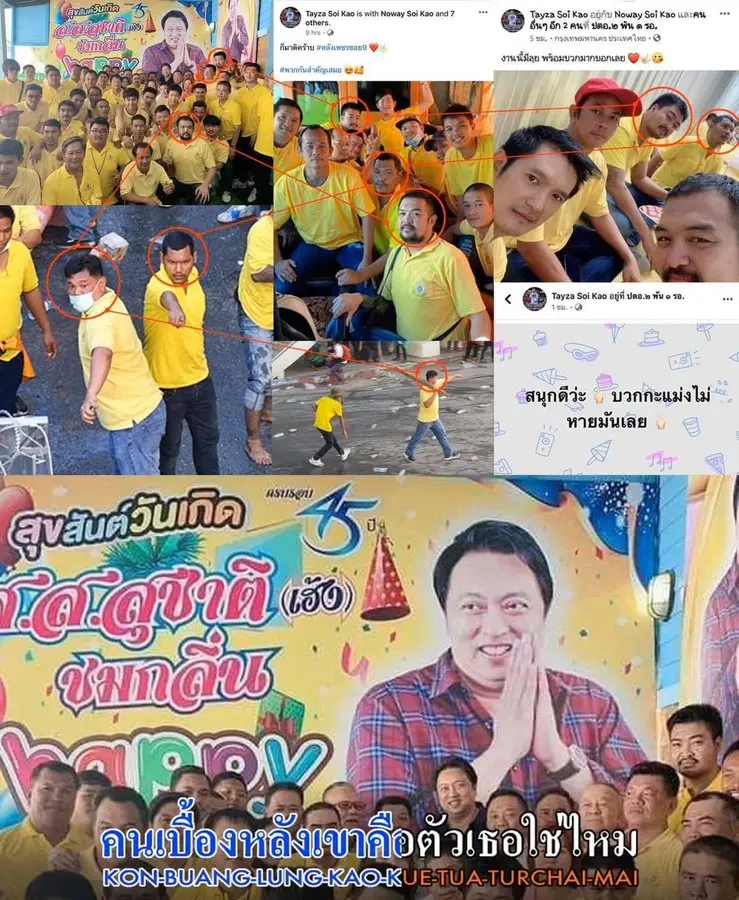 โลกออนไลน์ ได้มีการเผยแพร่ข้อมูลและภาพของผู้ชุมนุม กลุ่มคนเสื้อเหลือง โดยมีการแฉว่า มวลชนเหล่านี้เป็นพรรคพวกของนายสุชาติ ชมกลิ่น รัฐมนตรีว่าการกระทรวงแรงงาน และส.ส.พรรคพลังประชารัฐ ในจ.ชลบุรี ซึ่งมีฉายาว่า “เสี่ยเฮ้ง-ลูกจับกังสู่รมว.”