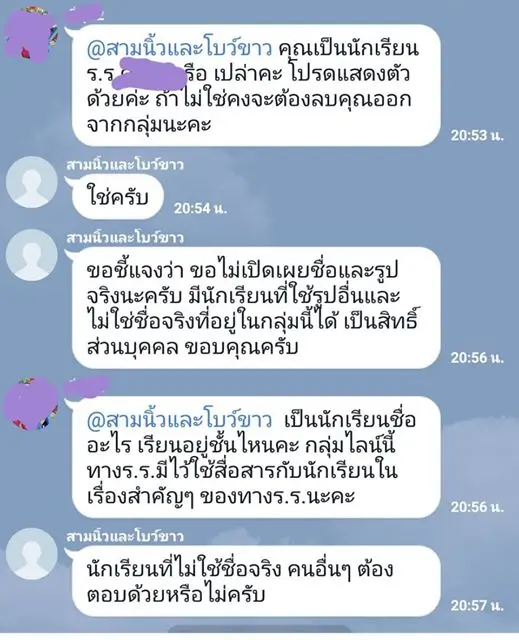 “ผมขอส่งหลักฐานการเข้าไปแทรกแซง ของผู้ไม่หวังดี ไปยุยง ปลุกปั่น ในกลุ่มไลน์ของโรงเรียนต่างๆ โดยใช้ชื่อ @สามนิ้วและโบว์ขาว หรือชื่ออื่นๆ