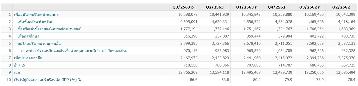 ธนาคารแห่งประเทศไทย (เงินให้กู้ยืมแก่ภาคครัวเรือน https://www.bot.or.th/…/statistics/BOTWEBSTAT.aspx…)