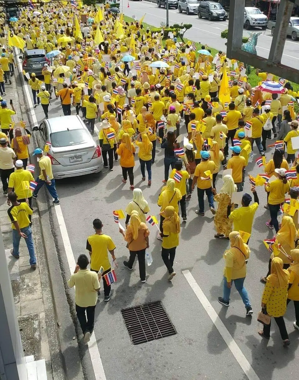 ม็อบ21ตุลา ผู้สื่อข่าวรายงานว่า ที่หน้าธนาคารเพื่อการเกษตรและสหกรณ์การเกษตร อ.สุไหงโก-ลก จ.นราธิวาส มีมวลชนชาว อ.สุไหงโก-ลก อ.แว้ง และอ.สุไหงปาดี จ.นราธิวาส ใส่เสื้อเหลืองรวมตัวกันจำนวนมากเพื่อร่วมเดินรณรงค์สำนึกรักประเทศไทย ปกป้องสถาบันพระมหากษัตริย์