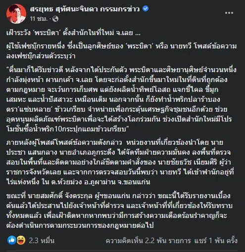 หลังจากที่ข้อความดังกล่าวได้ถูกเผยแพร่ออกไปนั้น ทางหน่วยงานที่เกี่ยวข้องลงตรวจสอบพื้นที่ติดตาม พระบิดา โจเซฟ และ ลูกศิษย์ อย่างใกล้ชิดตามคำสั่งของ ผู้ว่าฯ จ.เลย