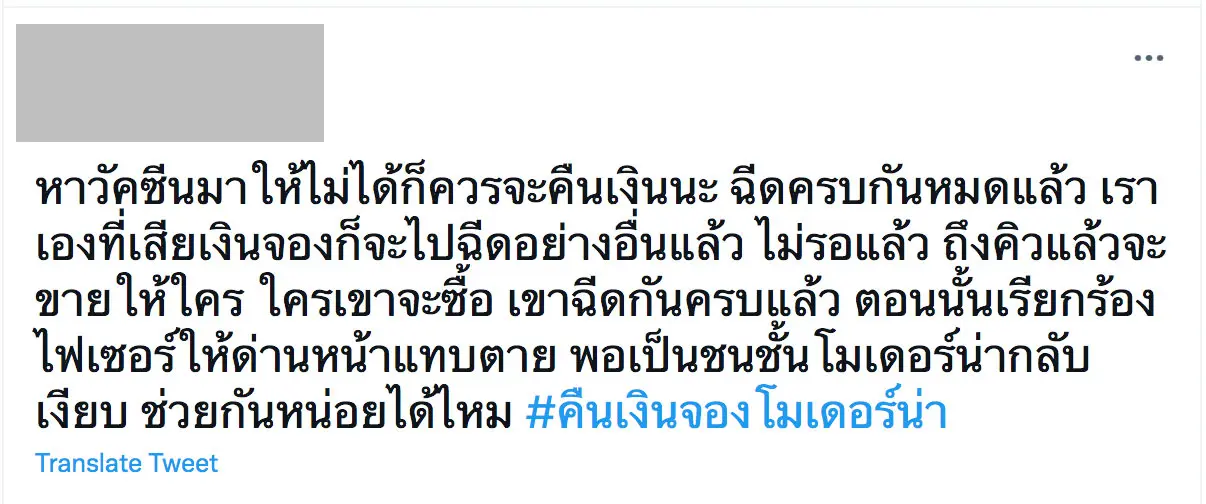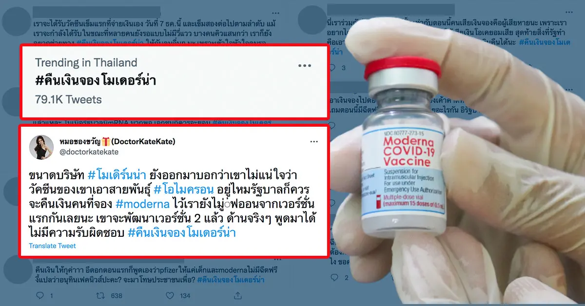 ชาวเน็ตเคลื่อนไหนอีกแล้ว โลกออนไลน์เดือนแห่ติด #คืนเงินจองโมเดอร์น่า พุ่งขึ้นติดเทรนประเทศไทย ลั่น! หาวัคซีนไม่ได้ ก็คืนเงินจองมา