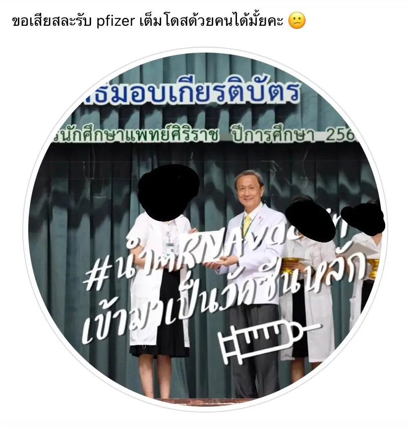 ซึ่งจากกรณีเรื่องราวของโพสต์ที่อาจารย์แพทย์ได้เล่ามาจึงทำไปสู่การตั้งคำถามของชาวสื่อสังคมออนไลน์ แม้ว่าจะมีบางส่วนที่เข้ามาคอมเม้นต์ชื่นชมและขอบคุณในความเสียสละแต่คนอีกกลุ่มหนึ่งกลับมองว่าในขณะนี้ คนอยากฉีดไฟเซอร์กันทั้งประเทศ แต่กลับอ้างโครงการวิจัยเอาไฟเซอร์มาให้อาจารย์แพทย์ฉีด แทนที่จะให้บุคลากรทางการแพทย์ที่ทำงานด่านหน้าจริง ๆ ได้ฉีด ไม่ใช่นี่มันเสียสละตรงไหนมันคือข้ออ้างที่จะแซงคิวฉีดวัคซีนเอาตัวรอดก่อนชัดๆ ส่วนการวิจัยทดลองที่ว่ามาก็เป็นเพียบข้ออ้างเพราะว่า ทดลองในสิ่งที่คนทั่วโลกรู้กันอยู่แล้วว่า mRNA ย่อมดีกว่าไวรัลเวกเตอร์