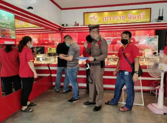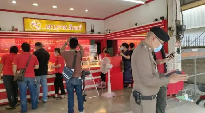 พ.ต.อ.โสภณ ม่วงเฟื่อง ผกก.สภ.เมืองเชียงราย และเจ้าหน้าที่ได้รุดไปตรวจสอบในที่เกิดเหตุพบปลอกกระสุนขนาด 9 มม. ตกอยู่หน้าร้านและในร้านรวม 2 ปลอก เบื้องต้นพบว่าชิงทองรูปพรรณหลบหนีไปรวมน้ำหนัก 114 บาท รวมมูลค่ากว่า 3 ล้านบาท พ.ต.อ.โสภณ กล่าวว่าจากการสอบสวนเบื้องต้นทราบว่าก่อนเกิดเหตุ คนร้ายเป็นชายจำนวน 2 คน ขับขี่รถจักรยานยนต์ไปจอดที่บริเวณหน้าร้านจากนั้นบุกเข้าไปภายในร้านที่มีพนักงานส่วนใหญ่เป็นผู้หญิง ก่อนใช้ปืนยิงตั้งแต่หน้าร้านทันที 1 นัด และในร้าน 1 นัด จนพนักงานในร้านพากันหลบหนีกระจัดกระจายออกไปโดยที่คนร้ายไม่ได้พูดจาใดๆหลังจากนั้นคนร้ายใช้มือรื้อม่านพลาสติกกันโควิด แล้วกระโดดเข้าไปในช่องพนักงานก่อนจะใช้มือกวาดเอาสร้อยทองคำรูปพรรณที่แขวนเรียงอยู่ภายในใส่ถุงที่เตรียมมา
