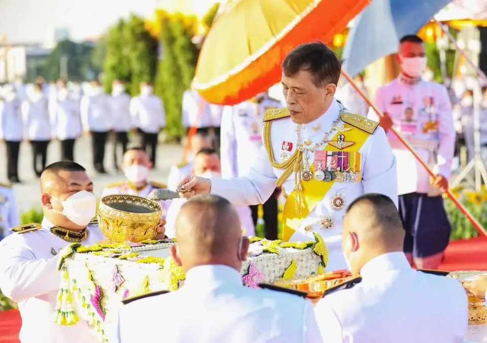 พระบาทสมเด็จพระเจ้าอยู่หัว ทรงตั้งพระราชสัตยาธิษฐานถวายเครื่องราชสักการะ ทรงโปรยข้าวตอก ดอกไม้ ที่โต๊ะเครื่องบวงสรวงสังเวย แล้วทรงพระดำเนินไปยังแท่นวางศิลาฤกษ์ ฯทรงพระสุหร่าย ทรงเจิมแผ่นอิฐทอง นาก เงิน และแผ่นศิลาฤกษ์ แล้วทรงวางลงในหลุมศิลาฤกษ์ พระสงฆ์เจริญชัยมงคลคาถา ชาวพนักงานลั่นฆ้องชัย ประโคมสังข์ แตร ดุริยางค์ เสร็จแล้ว เสด็จเข้าพลับพลาพิธี ทรงประเคนจตุปัจจัยไทยธรรมถวายสมเด็จพระสังฆราช และพระสงฆ์ ทรงหลั่งทักษิโณทก พระสงฆ์ถวายอนุโมทนา ถวายอดิเรก จากนั้น เสด็จพระราชดำเนินไปทรงกราบที่หน้าเครื่องนมัสการ ทรงลาพระสงฆ์
