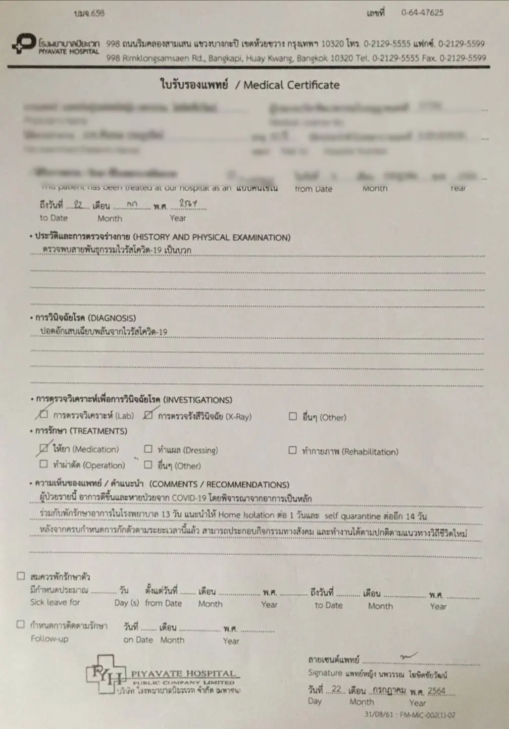แพทย์นัดตรวจสภาพภายในกับปอด กลางเดือนสิงหาหน้า ครับ ช่วงนี้ ทราบได้เอง สภาพภายในร่างกาย ผมหลวมไปหมด ขอพักฟื้นอีกระยะ ครับ