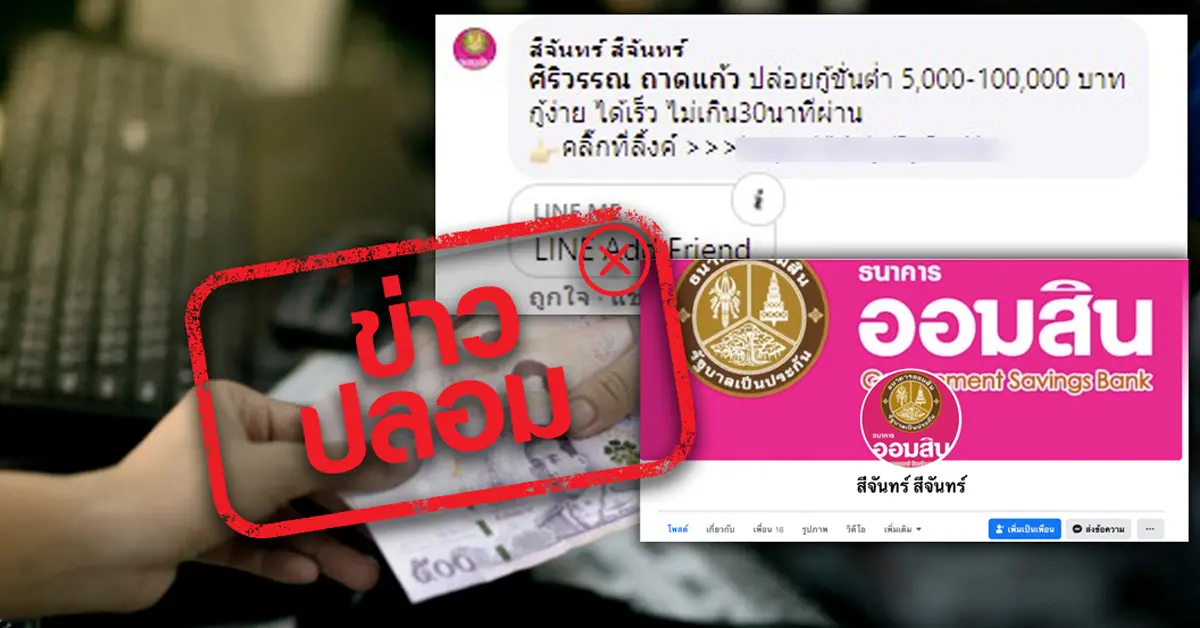 ออมสิน เตือนประชาชน ระวังตกเป็นเหยื่อ เฟซบุ๊กปลอม สีจันทร์ สีจันทร์ ใช้ภาพธนาคารปล่อยกู้นอกระบบหลอก ย้ำอย่าหลงเชื่อ!