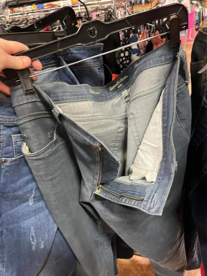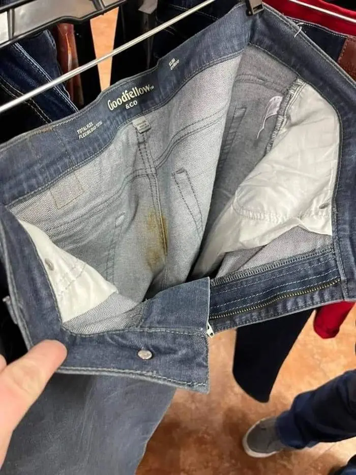 เพจเฟซบุ๊ก ขอโทษนะคะที่หนูจน เผยภาพกางเกงยีนส์ มือสอง ถูกแขวนขายในร้าน ระบุแคปชั่นว่า “มาดูกางเกงยีนมือสองค่ะ แม่ค้าบอก นี้งานป้ายแดง หนูว่าเป้าเหลืองมากกว่า” ซึ่งภาพดังกล่าวดูภายนอกแบบไม่สังเกตก็เป็นกางเกงยีนส์มือสองที่สภาพดูดี ไม่ขาดไม่เก่าแบบชำรุด ดูภายนอกถือว่าเป็นที่หมายปองของนักช้อปกางเกงมือสองหลายคน