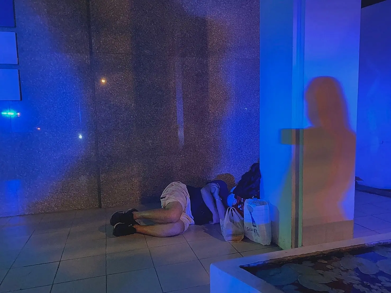 ภาพเดิมๆเริ่มกลับมาวันนี้ที่เราเจอ รปภท่านหนึ่งต้องมานอนบริเวณหน้าธนาคารเพราะที่ห้องเช่ามีเมียและลูกเพื่อนบ้านอีกหลายชีวิตต้องใช้ห้องน้ำรวม หลังจากพยายามติดต่อเข้ารับการรักษารพประกันสังคมและเบอร์ต่างๆไม่สำเร็จเนื่องจากติดวันหยุด จึงตัดสินใจเก็บข้าวของเสื้อผ้ามานอนรอการรักษาเบื้องต้นอาสาเส้นด้ายนำส่ง ศูนย์พักคอยเราต้องรอด คันนายาวเรียบร้อยแล้ว