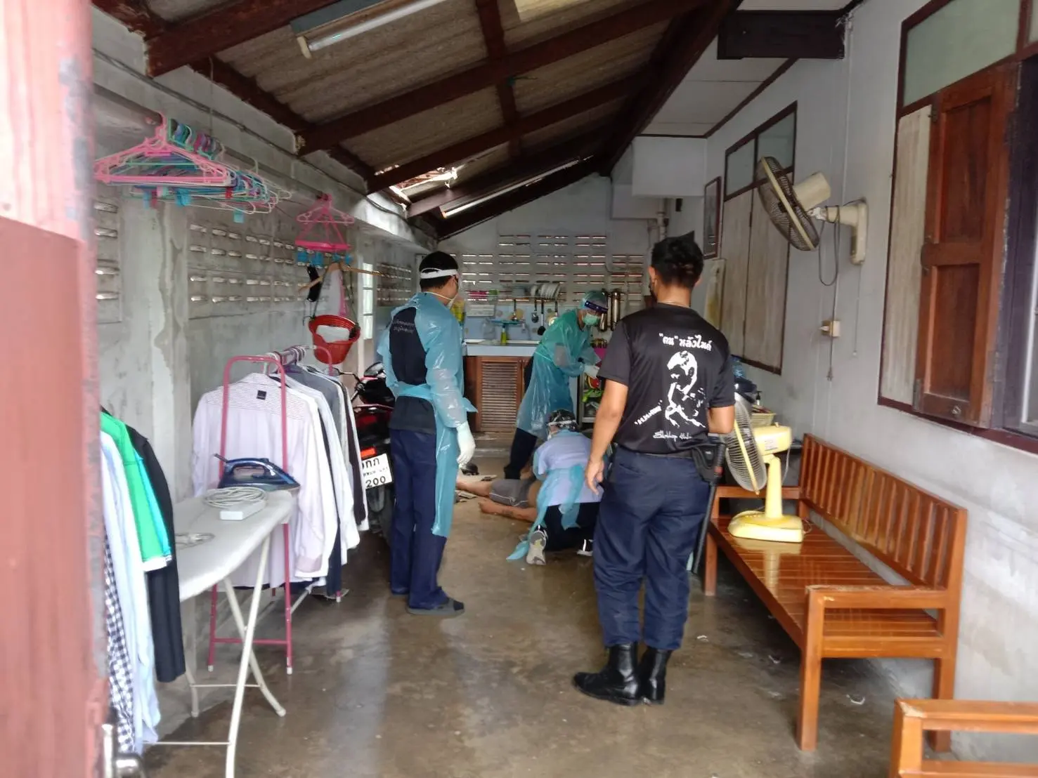 รปภ.เครียดโควิดดิ่งตึก – เมื่อเวลา 12.00 น. วันที่ 8 สิงหาคม เจ้าหน้าที่ตำรวจ สน.บางเขน ได้รับแจ้งเหตุชายตกจากที่สูงได้รับบาดเจ็บ ที่เกิดเป็นบ้านไม้ 2 ชั้น ที่พื้นชั้นล่างในส่วนของห้องครัว พบนายเฉลิมพล ชาวจ.บุรีรัมย์ สวมกางเกงขาสั้น ไม่สวมเสื้อ ที่ใบหน้าพบว่าใส่แมส ตามร่างกายมีบาดแผล คิ้วขวาแตก นอนด้วยความเจ็บปวดอยู่ที่พื้น เจ้าหน้าที่ต้องสวมใส่ชุด PPE เข้าให้การช่วยเหลือเนื่องจากยังไม่มีการสอบสวนโรค ก่อนนำตัวส่งรักษาที่โรงพยาบาลภูมิพลอดุลยเดช จากการตรวจสอบพบหลังคากระเบื้องแตกเป็นรูกว้างประมาณ 1 เมตร