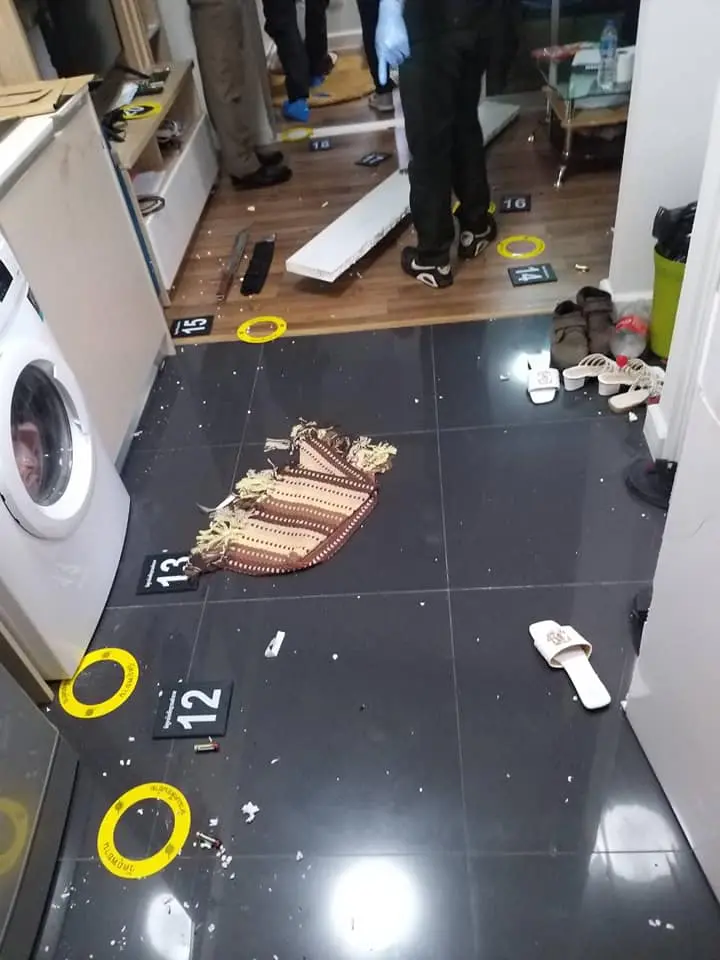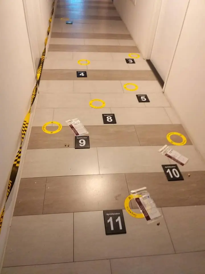 จนพังเสียหายภายในห้องนอน พบผู้เสียชีวิต 2 ราย ชาย-หญิง ผู้ชายนอนพิงปลายเตียง มีบาดแผลถูกยิงเข้าขมับด้านขวา ข้างตัวมีปืนไทยประดิษฐ์ขนาด .38 ตกอยู่ 1 กระบอกส่วนผู้หญิง นอนบนเตียง มีบาดแผล ถูกจ่อยิงเข้าหน้าผากเบื้องต้น สอบสวน ทราบว่า ทั้ง 2 คน เคยเป็นสามีภรรยากันแต่เลิกรากันไป มีลูกด้วยกัน 3 คน ลูกๆพักอยู่กับญาติห้องที่เกิดเหตุเป็นห้องเช่าที่ฝ่ายหญิง มาเช่าอยู่กับแฟนใหม่เมื่อประมาณ 03.00 น.วันเดียวกัน