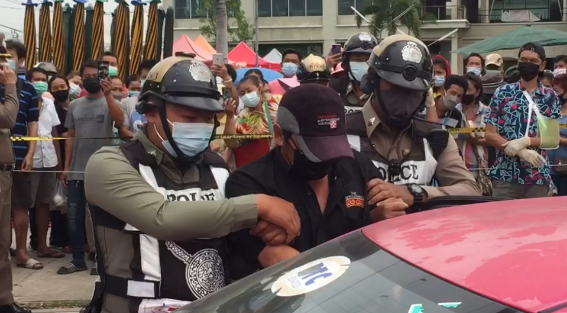 พันตำรวจโทนภัสพงษ์ ทัศนา สารวัตรกองกำกับการตำรวจตระเวนชายแดนที่ 14 ผู้ที่เข้าจับกุม บอกว่า ขณะเกิดเหตุกำลังไปทำบุญตักบาตรบริเวณตลาด ก็ได้ยินเสียงคนร้องว่ามีเหตุยิงกันให้ช่วยสกัดจับตัวคนร้าย จึงเข้าทำการจับกุมตัวพร้อมกับพลเมืองดีในตลาด ซึ่งผู้ก่อเหตุก็ยอมมอบตัวแต่โดยดี จากการซักถามทราบว่าก่อนเกิดเหตุทั้งสองคนเดินทางมาจากย่านแสมดำ โดยฝ่ายชายจะไปช่วยขายของในตลาด แต่จากนั้นก็เกิดมีปากเสียงกัน ก่อนจะชักอาวุธปืนที่พกติดตัวมา ยิงใส่แฟนตนเอง 7 นัด ได้รับบาดเจ็บสาหัสก่อนจะหลบหนี