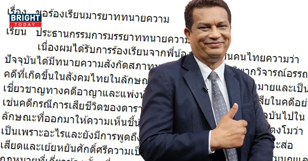 เนื่องผมได้รับการร้องเรียนจากพี่น้องประชาชนคนไทยความว่า ปัจจุบันได้มีทนายความสังกัดสภาทนายความฯออกมาวิพากษ์วิจารณ์อรรถคดีที่เกิดขึ้นในสังคมไทย ในลักษณะที่ตนเองเป็นผู้รอบรู้กฎหมายและเป็นผู้เชี่ยวชาญทางคดีอาญาและแพ่ง ทั้งๆที่ตนเองไม่ได้มีส่วนได้เสียในคดี อย่างเช่นคดีกรณีการเสียชีวิตของดาราดัง “แตงโม นิดา” ที่เป็นข่าวอยู่ในปัจจุบัน ไปในลักษณะที่ออกมาให้ความเห็นชี้นำสังคมถึงสาเหตุการตายของแตงโมว่าเป็นเพราะอะไร และยังมีการพูดถึงบุคคลที่เป็นผู้เสียหายในลักษณะส่อเสียดและเย้ยหยันศักดิ์ศรีความเป็นมนุษย์ อันเป็นการละเมิดรัฐธรรมนูญและกฎหมายที่เกี่ยวข้อง ทั้งๆที่ตนเองไม่ได้เป็นทนายความหรือที่ปรึกษากฎหมายในคดีดังกล่าว