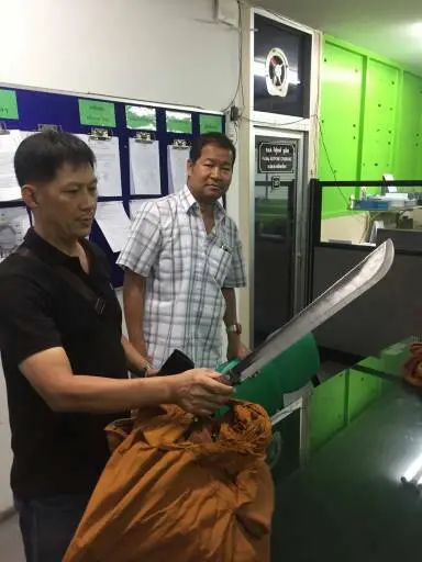 เบื้องต้นเจ้าหน้าที่ตำรวจแจ้งข้อหาแต่งกายเลียนแบบพระภิกษุและพกพาอาวุธมีดไปในเมืองหรือที่สาธารณะนำตัวส่งพนักงานสอบสวนสน.พลับพลาไชย 1 ดำเนินคดีต่อไป