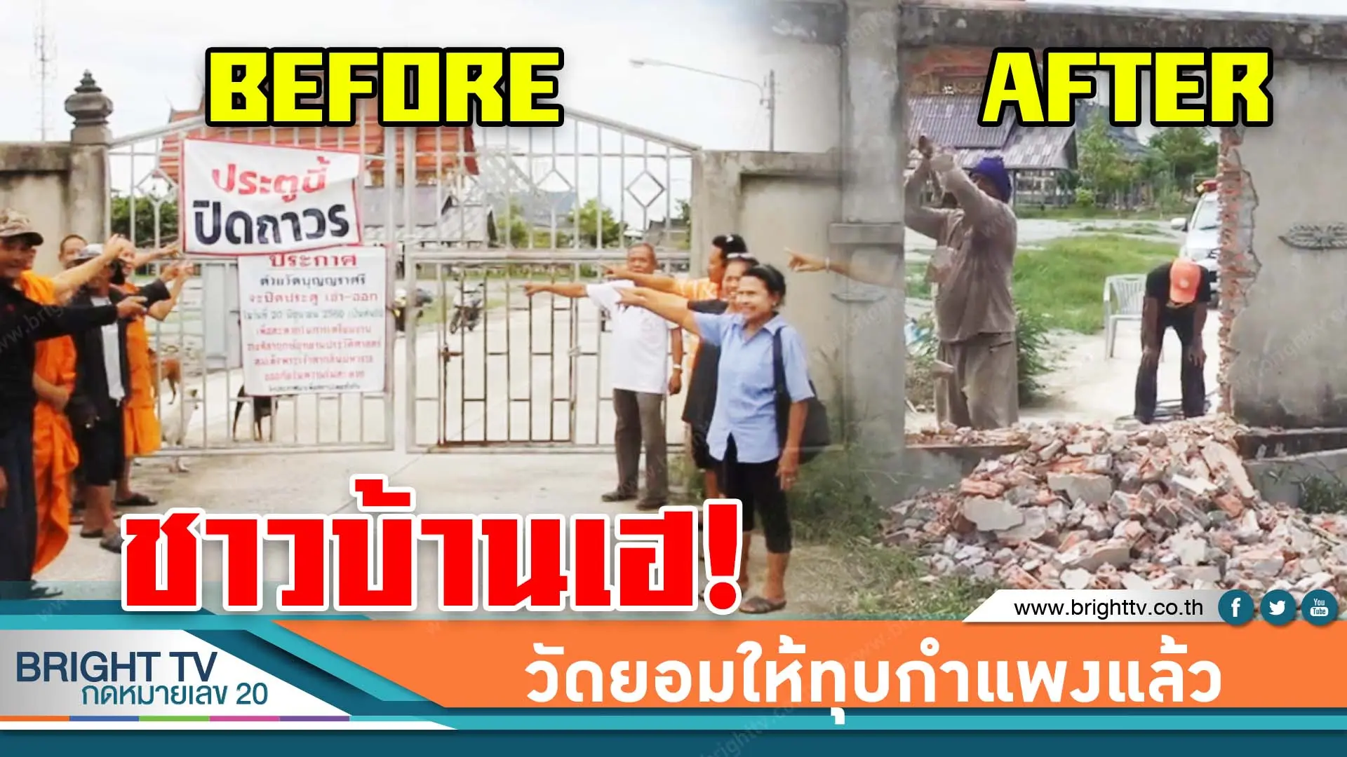 หลังจากเจ้าอาวาสวัดบุญญราศี จ.ชลบุรี ปิดทางเข้าออกเพื่อป้องกันกลุ่มมิจฉาชีพ แต่ทำให้ชาวบ้านเดือดร้อนจนมีเหตุบานปลายให้เจาะประตูเข้าออก ล่าสุด ชาวบ้านดีใจเมื่อทางวัดยอมให้ทุบกำแพงวัดแล้ว