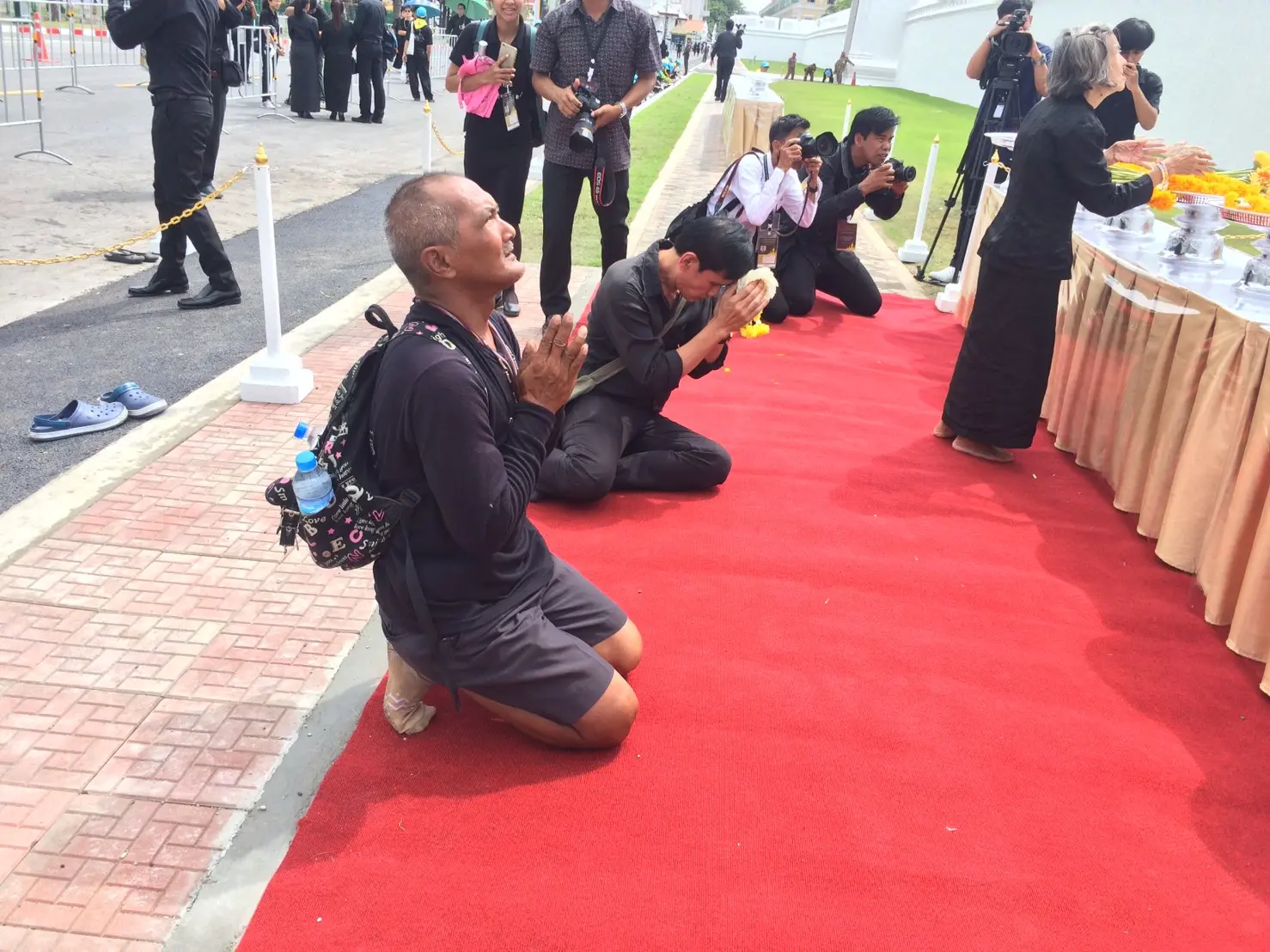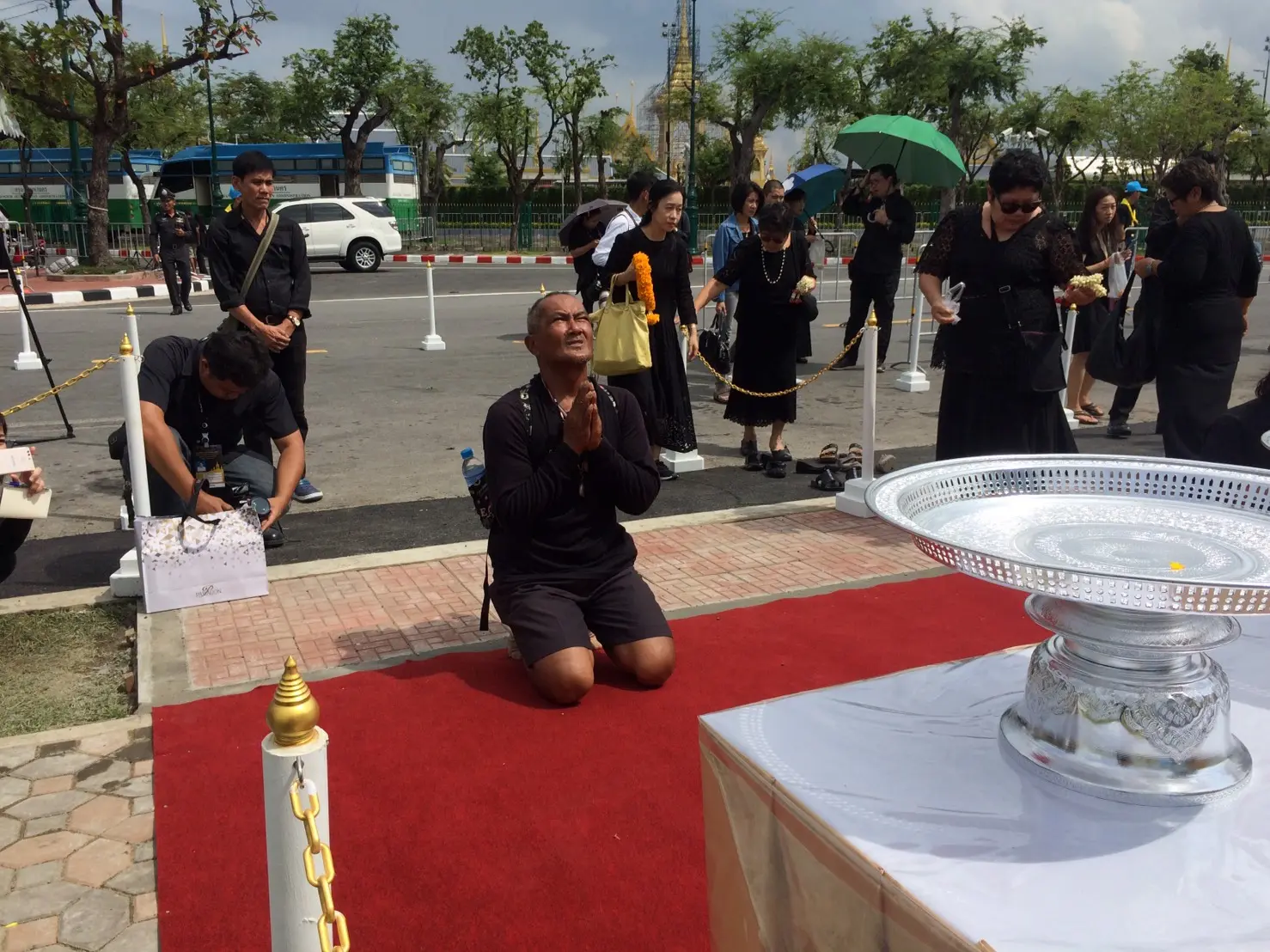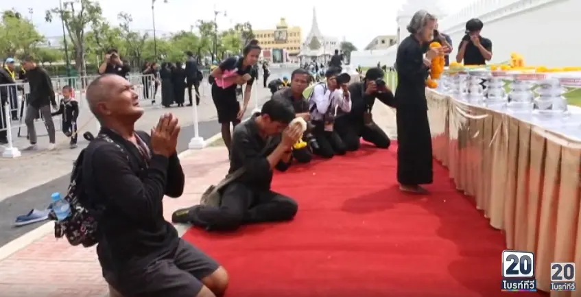 เช่นเดียวกับ คุณลุงทนงศิลป์ สามัคครี อายุ 56 ปี เผยว่า ตนเองเป็นชาว ต.ตลาดใหญ่ อ.เมืองภูเก็ต จ.ภูเก็ต ที่เดินทางมากราบถวายบังคมพระบรมศพฯ เป็นครั้งที่ 2 แล้วด้วยการปั่นจักรยานจาก จ.ภูเก็ต ใช้ระยะเวลาในการเดินทางเกือบสัปดาห์ถึงกรุงเทพมหานคร พร้อมบอกเล่าถึงความรักที่มีต่อพระองค์ท่านให้ทีมข่าวไบรท์ทีวีฟังทั้งน้ำตา ว่า ตนเองรักและเทิดทูนพระองค์อย่างสุดหัวใจ เพราะไม่เคยเห็นพระมหากษัตริย์องค์ใดที่จะเสียสละเพื่อพสกนิกรของพระองค์เองได้เพียงนี้ วันนี้ไม่มีท่านแล้ว รู้สึกเสียใจมาก เหมือนไม่รู้จะใช้ชีวิตอย่างไร