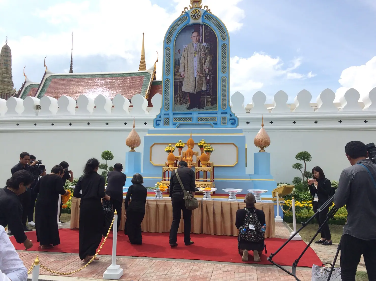 ด้านหน้าพระบรมมหาราชวัง ระหว่างประตูวิเศษไชยศรี และประตูมณีนพรัตน์ ถ.หน้าพระลาน ได้มีการอัญเชิญพระบรมฉายาลักษณ์ พระบาทสมเด็จพระปรมินทรมหาภูมิพลอดุลยเดช รัชกาลที่ 9 ที่สมเด็จพระเจ้าอยู่หัวฯ ทรงโปรดเกล้าโปรดกระหม่อม เชิญมาไว้หน้าพระบรมมหาราชวัง เพื่อให้พสกนิกรชาวไทยทุกคน เดินทางมาวางพวงมาลัยกราบสักการะ และน้อมถวายความอาลัยได้