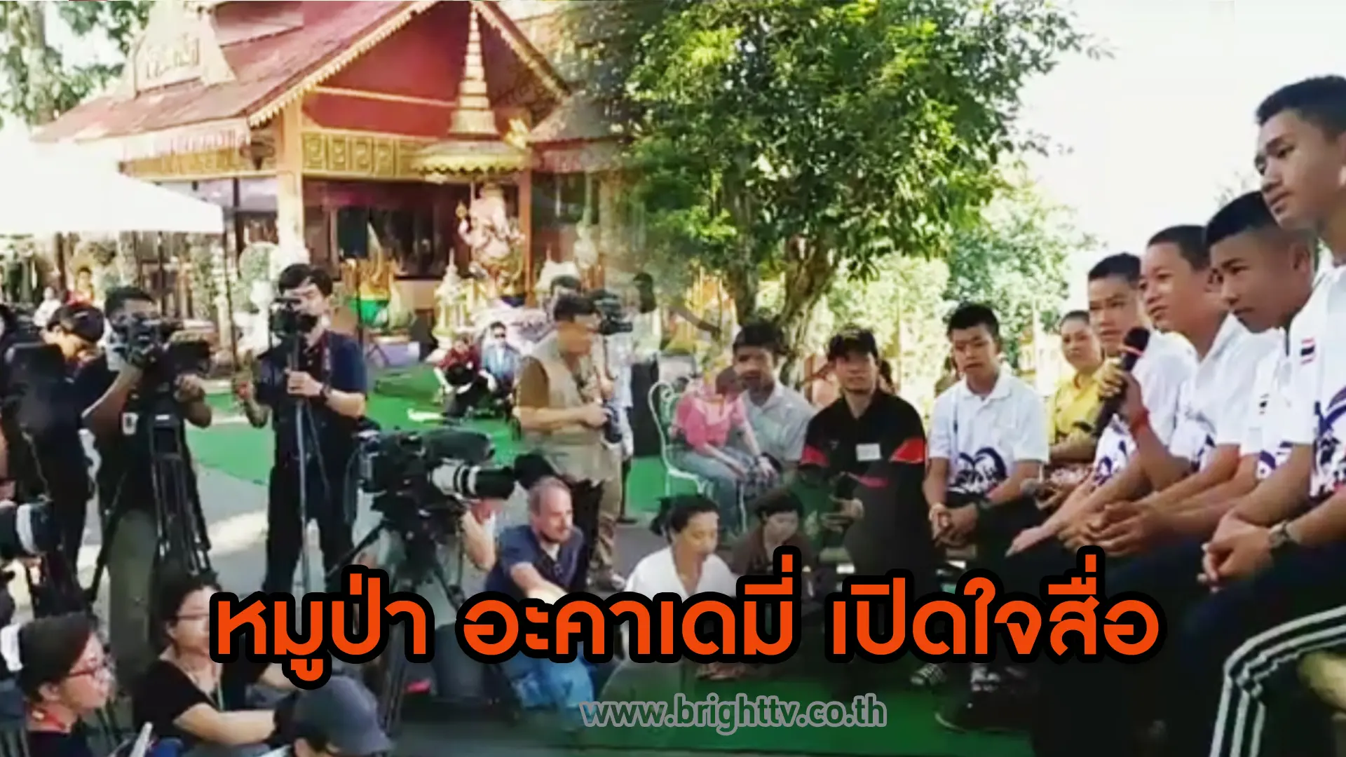 การสัมภาษณ์ให้ทีมหมูป่า อะคาเดมี่ นั่งเรียงแถวโดยมีผู้ปกครองนั่งด้านหลัง คำถามจะให้ทีมหมูป่าเล่าถึงเหตุการณ์ตอนติดถ้ำ รวมทั้งวิธีเอาตัวรอด และการให้กำลังใจซึ่งกันและกัน นอกจากนี้มีคำถามกรณีทีมหมูป่า ลอดถ้ำจำลองว่ากระทบต่อความรู้สึกเด็กไหม ซึ่งโคช้เอก ได้เป็นตัวแทนตอบว่า เด็กๆ ทีมหมูป่า เห็นถ้ำจำลองเลยสงสัยว่าข้างในเหมือนถ้ำหลวงที่เคยติดไหม จึงทดลองลอดเข้าถ้ำ ก็ปรากฏว่าไม่เหมือนถ้ำหลวง ทีมงานสร้างไม่เหมือนเท่าไหร่ และยืนยันไม่กระทบต่อสภาพจิตใจของทีมหมูป่า นอกจากนี้ทีมหมูป่า อะคาเดมี่ ยังสัญญากับสังคมว่าจะเป็นเด็กดี ไม่สร้างเรื่องเดือดร้อน อีก พร้อมจะตั้งใจเรียน