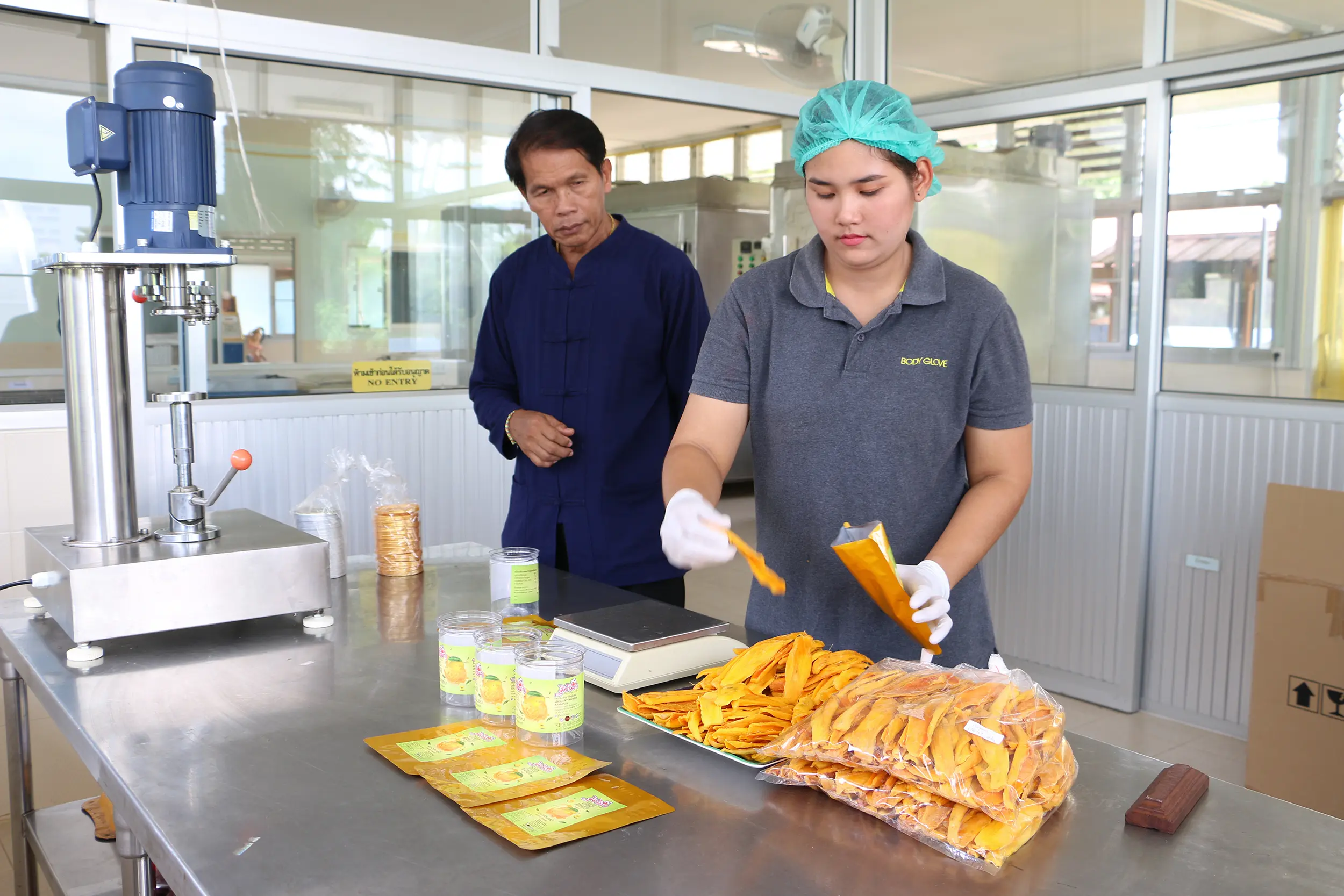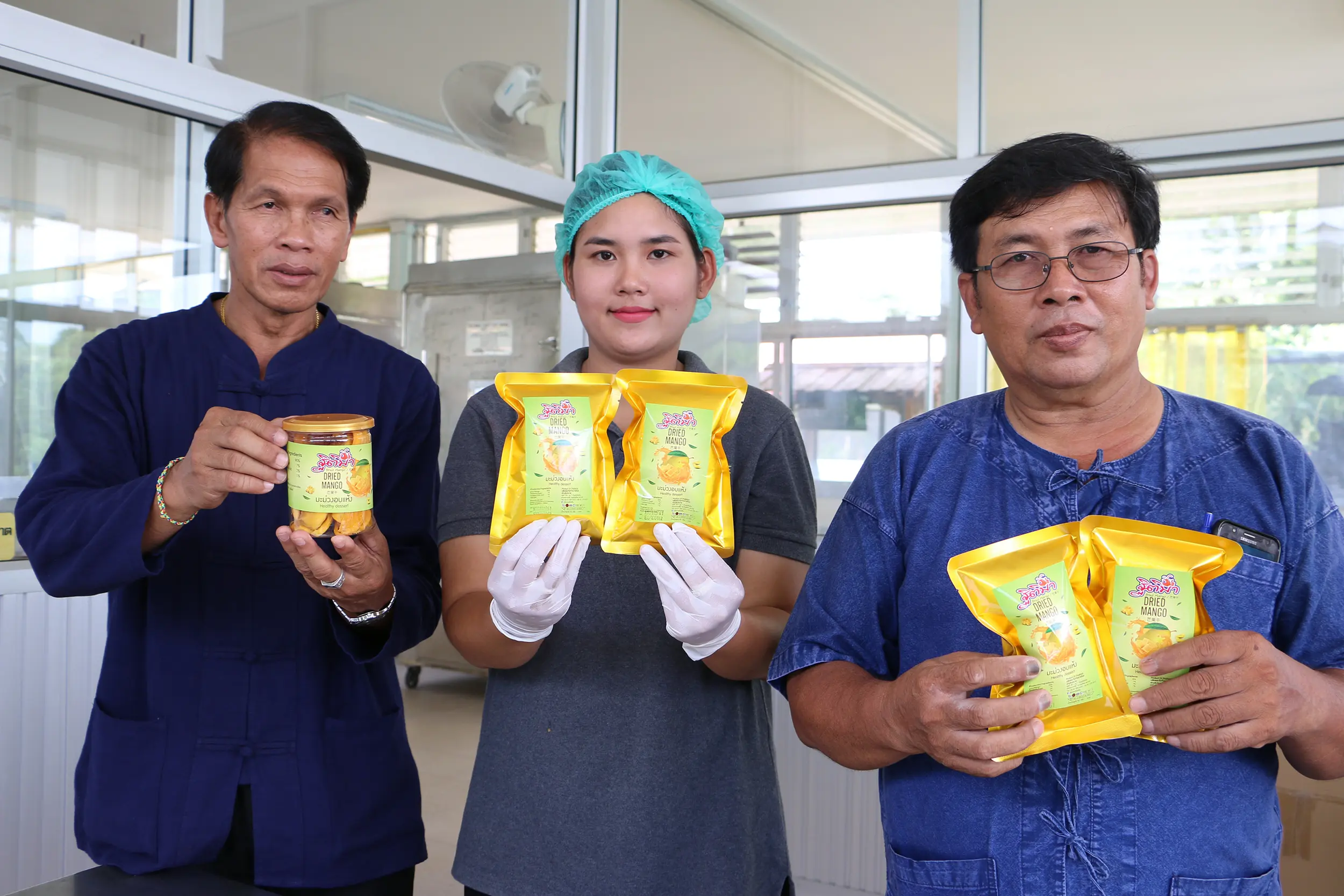 ก่อนนำไปบรรจุใส่ซองที่มีรูปแบบสวยงามปริมาณ 50 กรัม ขายถุงละ 35 บาท บรรจุกระป๋องสูญญากาศปริมาณ 200 กรัม ขายกระป๋องละ 95 บาท เป็นของกินของฝากที่ทำให้ผลผลิตเพิ่มมูลค่า ซึ่งขณะนี้มีผู้สนใจสั่งซื้ออยู่เป็นประจำแต่วันหนึ่งๆสามารถผลิตได้แค่ 50-100 กิโลกรัม เท่านั้น เนื่องจากขาดแคลนแรงงานรวมถึงค่าแรงงานก็มีราคาสูงจึงทำเป็นอุตสาหกรรมครอบครัวในหมู่ญาติพี่น้องแต่ก็ถือได้ว่าเป็นการแก้ปัญหาวิกฤตราคาผลผลิตมะม่วงมหาชนกที่ตกต่ำ เปลี่ยนจากวิกฤตเป็นโอกาสด้วยการเติมภูมิปัญญาและองค์ความรู้ใส่เข้าไป ก็ทำให้มีรายได้เป็นกอบเป็นกำ