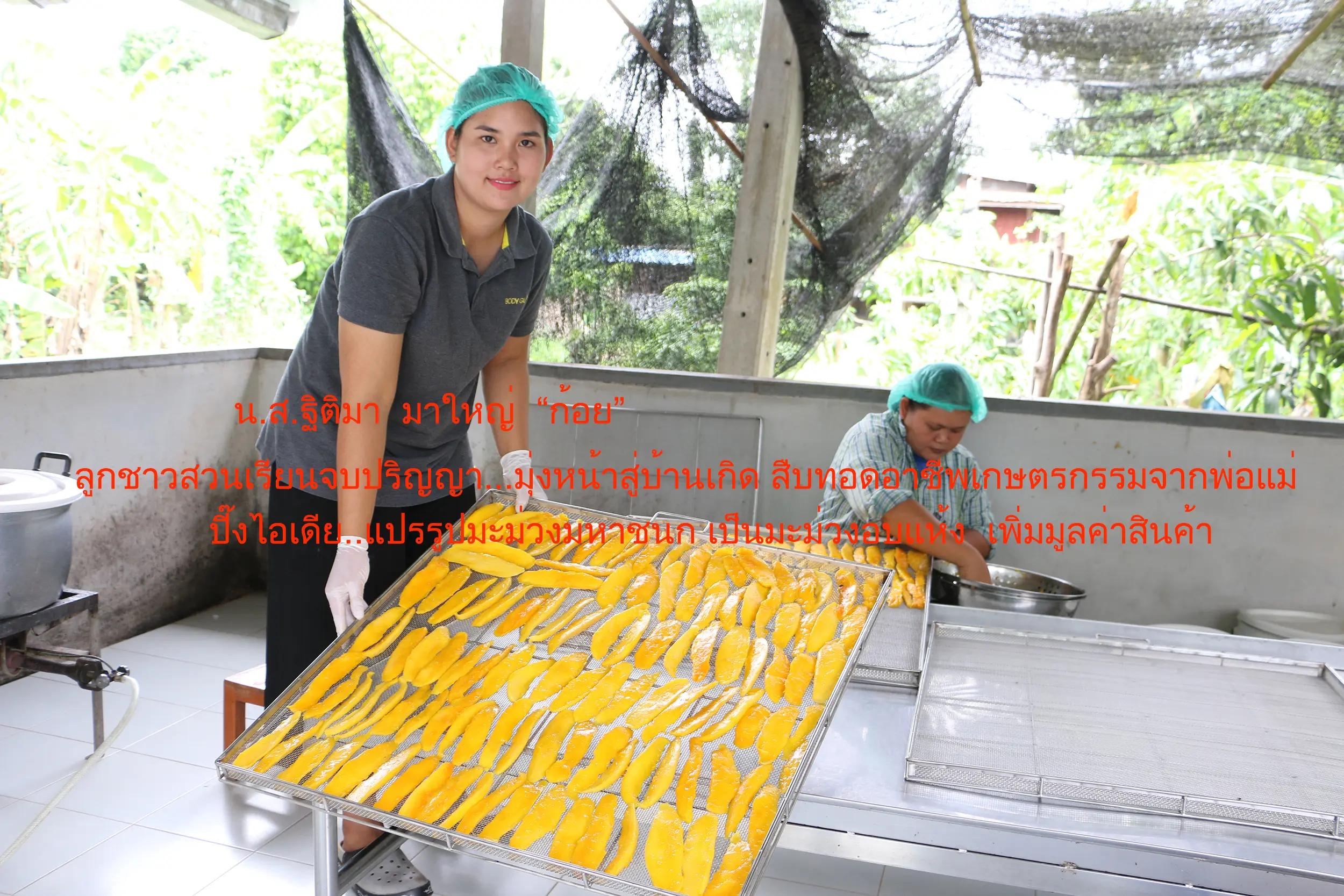 น้องก้อย นางสาวฐิติมา มาใหญ่ นิสิตสาวจากมหาวิทยาลัยราชภัฎพิบูลสงคราม สาขาคหกรรมศาสตร์ ลูกสาวชาวสวนมะม่วง อำเภอสากเหล็ก จังหวัดพิจิตร ได้หันหลังให้กับการเป็นมนุษย์เงินเดือน ซึ่งได้ค่าตอบแทนไม่คุ้มค่าเล่าเรียนที่พ่อแม่ได้ส่งเสียไป จึงมุ่งหน้ากลับบ้านเกิดมาช่วยพ่อแม่สืบทอดอาชีพเกษตรกรรม โดยนำความรู้ที่เรียนมาแปรรูปมะม่วง พันธุ์มหาชนก เป็นมะม่วงอบแห้ง